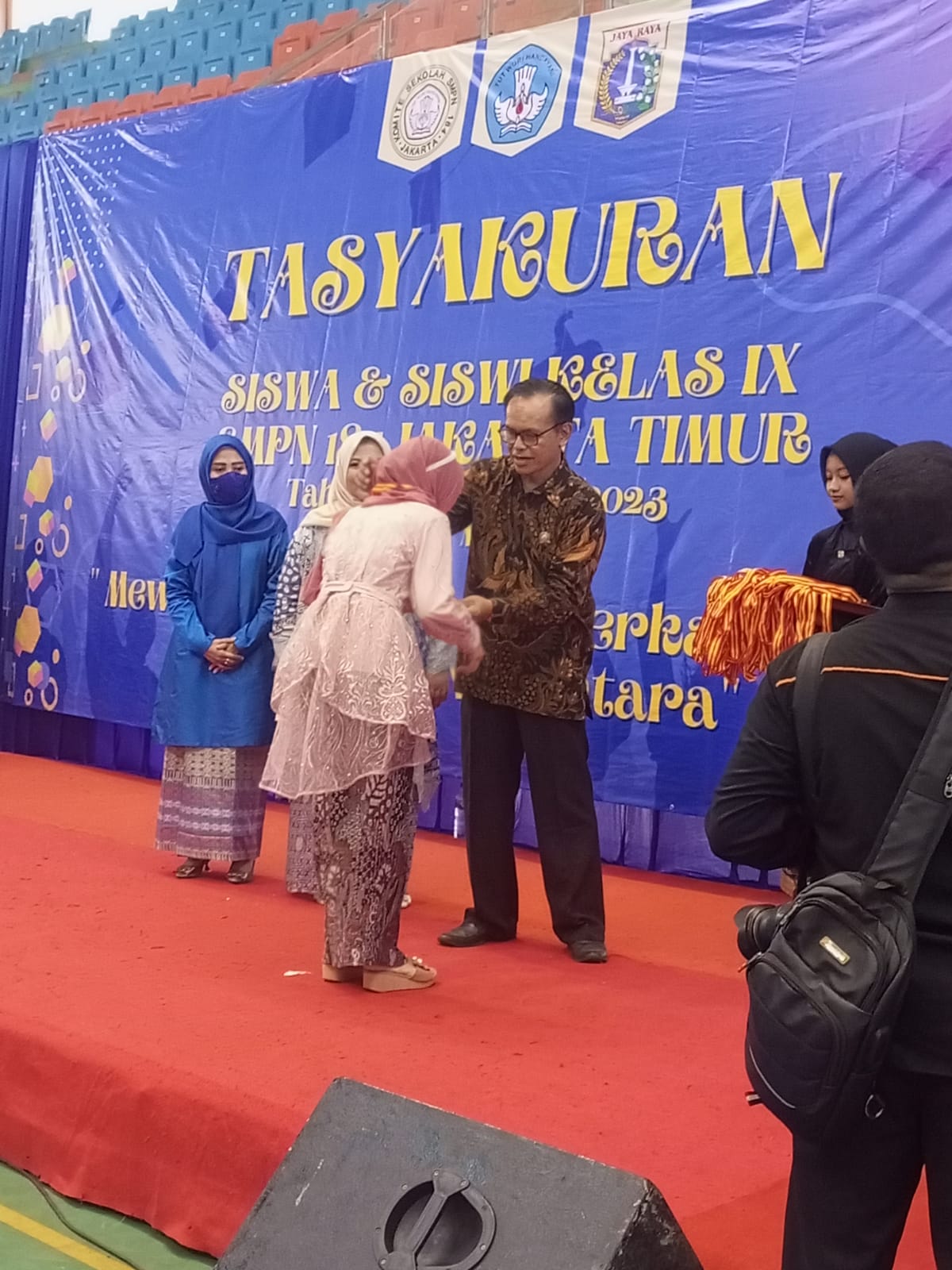 SMPN 184 Jakarta menggelar Tasyakuran Alumni setelah 355 siswa dari 9 kelas peserta didik Lulus 100 %, Kegiatan yang dilaksanakan oleh Orang tua Peserta Didik melalui Komite Sekolah di Gedung GOR PKP Jl. Raya PKP Kelapa Dua Wetan, Kecamatan Ciracas, Jakarta Timur. (27-5-2023)
