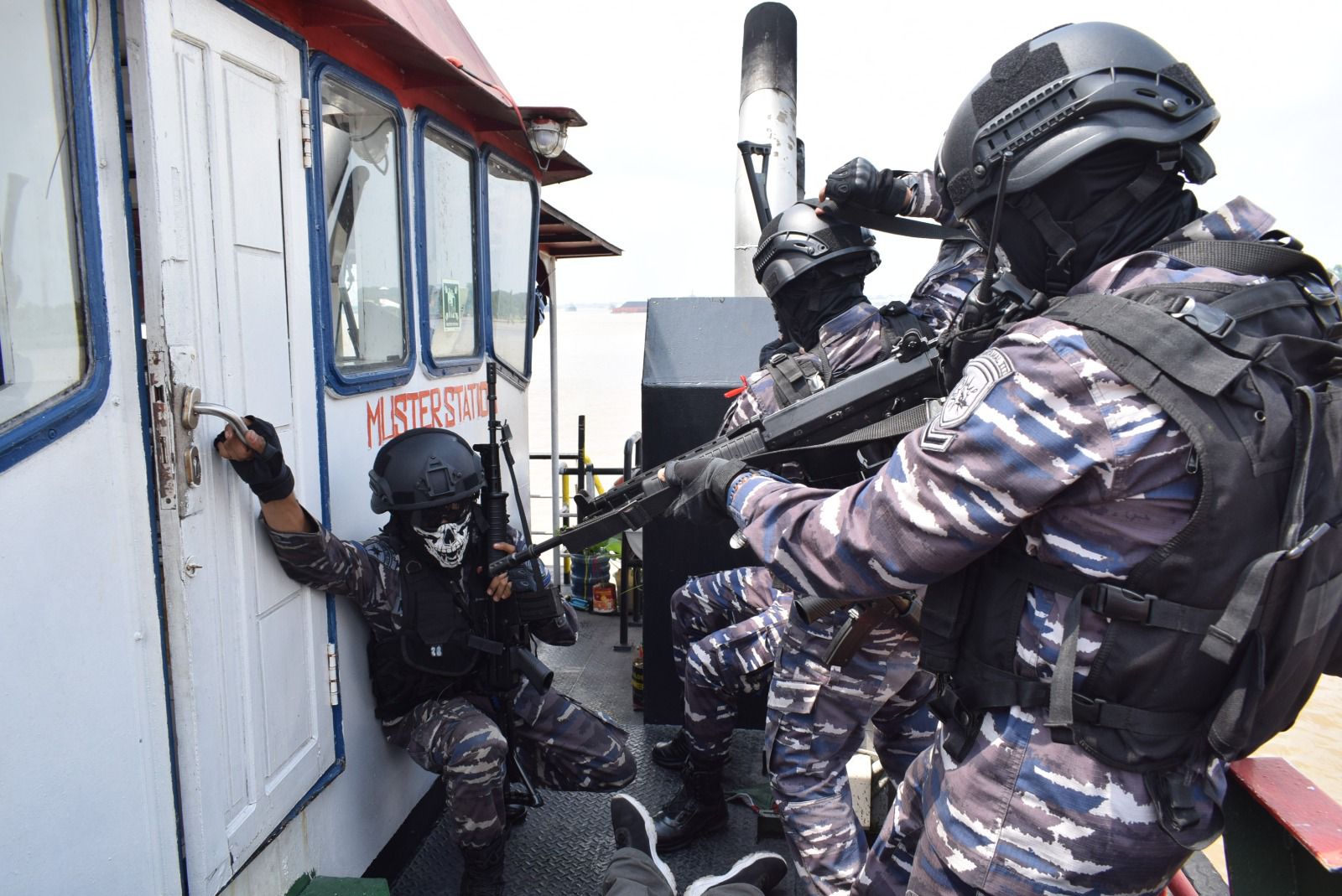 Pada Latihan tersebut disimulasikan bahwa kapal yang bermuatan bahan bakar jenis solar tersebut sekitar pukul 09.00 Wib pada posisi 02˚.59’.04.9”S – 104˚47’42.1”T diperairan PT. Pusri Sungai Musi berhasil dikuasai oleh para perompakan dan pembajakan dengan menggunakan 1 buah Speed boat. Tidak hanya itu para perompak juga menyandera awak kapal.