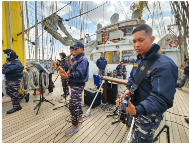 Jakarta, 30 Mei 2023,—- Ada yang berbeda dari rutinitas prajurit KRI Bima Suci pada pelayaran muhibah diplomasi dan duta bangsa Kartika Jala Krida tahun 2023 ini. Pelayaran tahun ini, Taruna AAL akan bergabung pada event L’Armada di kota Rouen, Prancis pada Selasa (13/06) mendatang. Berbeda dari tahun-tahun sebelumnya dimana para taruna Akademi Angkatan Laut (AAL) onboard sejak keberangkatan dan mengikuti pelayaran KRI Bima Suci hingga kembali lagi ke tanah air. Oleh karena itu selama pelayaran hingga Prancis, para prajurit mengisi dengan berbagai kegiatan seperti perawatan geladak kapal, pembersihan kapal, perawatan peralatan dan tiang layar, penggantian tali temali, latihan band, latihan kesenian serta yang tidak kalah penting dukungan logistik yang disediakan juru masak kapal untuk seluruh prajurit kapal selama melaksanakan pelayaran. Hal ini tentunya juga bertujuan sebagai bentuk tanggung jawab seluruh prajurit pengawak KRI Bima Suci dalam menyiapkan kapal agar selalu dalam kondisi prima untuk mengikuti kegiatan selama pelayaran. Selain itu peran jaga laut yang meliputi jaga deck Haluan dan buritan, jaga anjungan, jaga bidang logistik maupun juga jaga mesin tanggungjawab secara rutin bagi seluruh personel KRI Bima Suci. Tidak hanya kegiatan perawatan dan jaga, seluruh personel juga memiliki hak untuk kegiatan-kegiatan penunjang lainnya setelah melaksanakan kegiatan rutin yakni layanan multimedia (hiburan), fasilitas gym serta beberapa fasilitas lainnya yang ada di kapal layar tinggi ini untuk menghilangkan kepenatan. Komandan KRI Bima Suci Letkol Laut (P) M. Sati Lubis mengatakan kegiatan diluar dari rutinitas seluruh prajurit TNI Angkatan Laut (TNI AL) pengawak KRI Bima Suci ini merupakan salah satu bentuk kesejahteraan yang diberikan agar moril seluruh prajurit selama pelayaran tetap terjaga. Disisi lain setiap harinya untuk menjaga keimanan, seluruh prajurit KRI Bima Suci melaksanakan ibadah bersama sesuai ajarannya dan khusus pada Kamis malam bagi prajurit yang beragama muslim melaksakanakan sholat isya berjamaah yang dilanjutkan dengan membaca surat Yasin bersama-sama. Misi pelayaran KRI Bima Suci akan berlangsung selama 214 hari atau sekitar 7 bulan dengan mengarungi sepertiga belahan dunia dengan jarak tempuh 25.869 NM. Selain itu dalam pelayaran ini, KRI Bima Suci-945 juga akan mengikuti beberapa event Internasional seperti L’Armada (Prancis), Tall Ship Race (Belanda, Inggris, Norwegia dan Skotlandia) serta Hense Sail di Jerman. Aktifitas yang dilakukan seluruh prajurit KRI Bima Suci telah menjadikan penekanan Kepala Staf Angkatan Laut (Kasal) Laksamana TNI Muhammad Ali bahwa setiap prajurit Jalasena agar selalu menjaga dan bertanggung jawab terhadap setiap Alutsista yang diawakinya guna kesiagaan dan kesiapan tinggi SSAT dimanapun berada sehingga dapat dioperasionalkan dalam setiap penugasan. (Red).