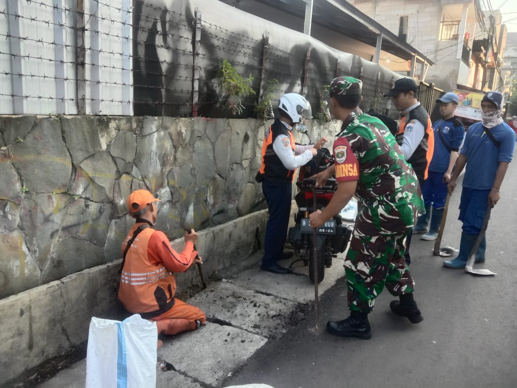Reportase Jakarta – Babinsa Kelurahan Kebon Sirih Serda Gogot Catur bersama tiga pilar dan warga melaksanakan kerja bakti membersihkan saluran air di Jl. Kebon Sirih Dalam RT 03/ RW 02 Kel.Kebon Sirih, Menteng,Jakarta Pusat