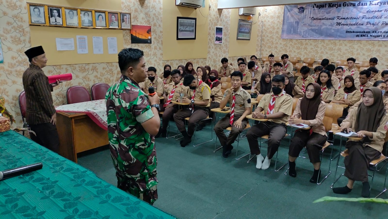 Reportase Jakarta || Jakarta Pusat – Senin (12/6/2023) Babinsa 2 Kelurahan Sumur Batu Koramil 07 Kemayoran Sertu Wiyono, hadir sebagai pemberian materi wawasan kebangsaan dan bahaya Narkoba kepada siswa SMAN 5 jakarta Jl. Sumur batu raya RT 14/RW 01 Kelurahan Sumur Batu, Kemayoran Jakarta Pusat.