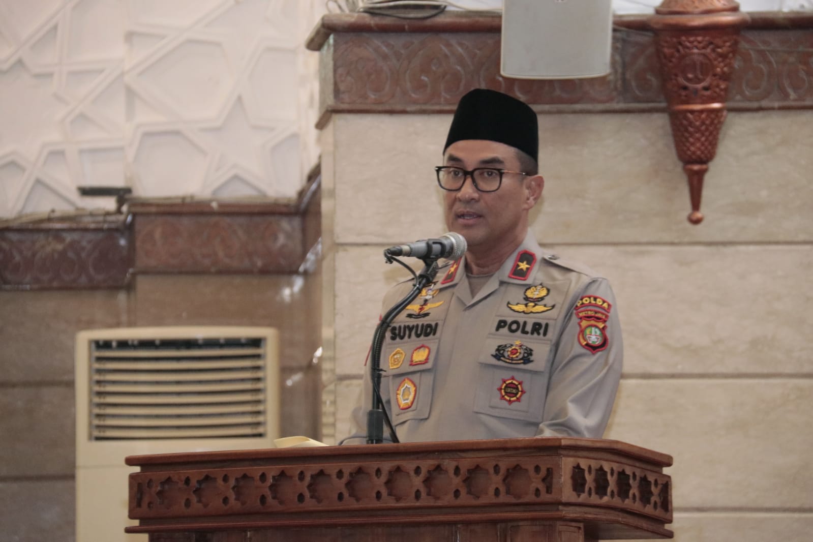 Dalam sambutannya, Suyudi mengatakan pentingnya pembinaan rohani terhadap personel untuk mengingatkan kita pada ajaran dan perintah Allah sehingga kita masuk dalam golongan orang-orang yang bertakwa. Dirinya juga menegaskan bahwa personel Polri yang memiliki akhlak yang mulia akan membawa dampak yang positif bagi kemajuan instansi Polri.