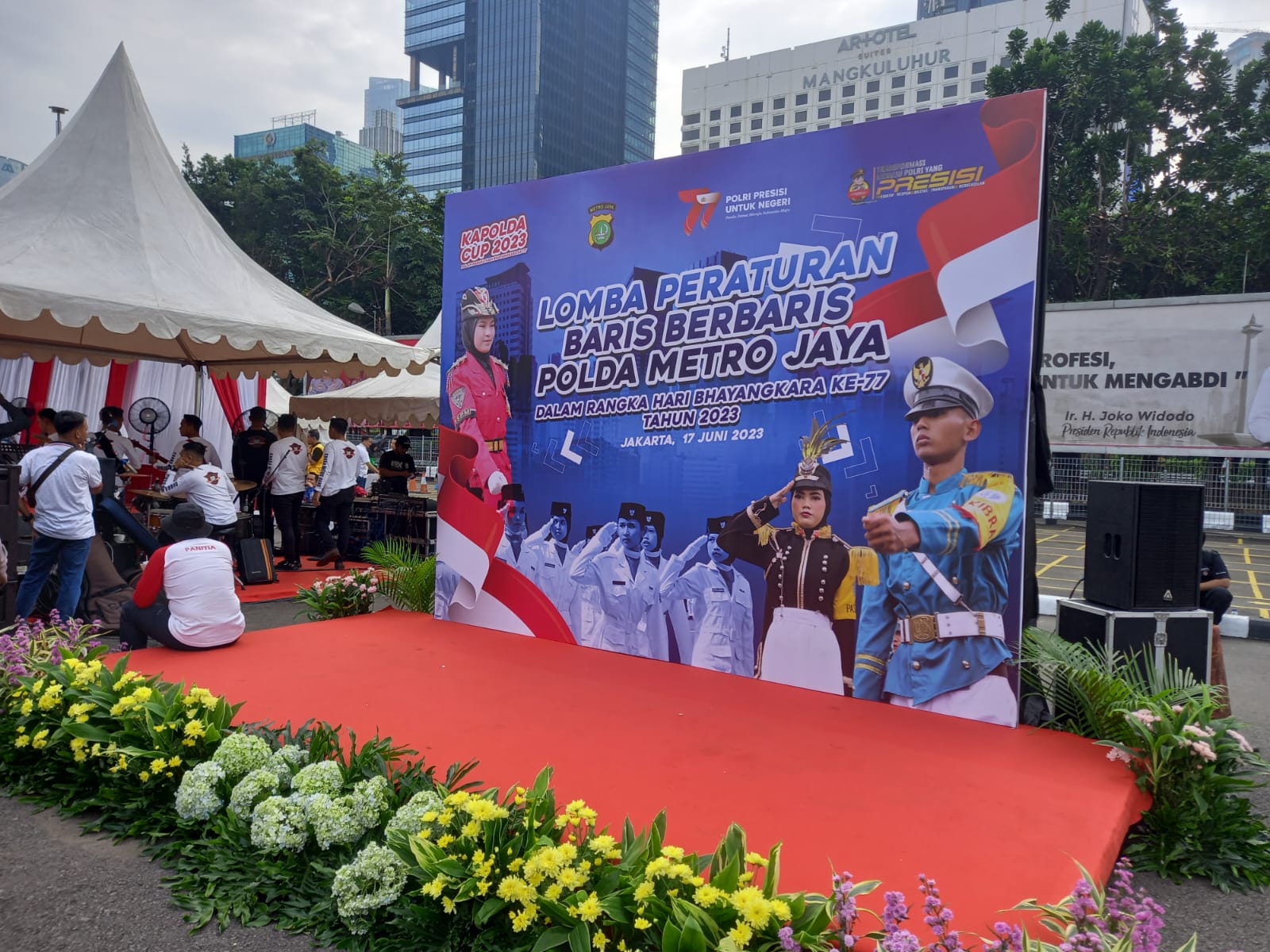 REPORTASE JAKARTAPolda Metro Jaya – Dalam rangka memeriahkan Hari Ulang Tahun Bhayangkara Ke-77, Ditlantas Polda Metro Jaya mengadakan Lomba Peraturan baris berbaris Kapolda Cup di Lapangan Presisi Polda Metro Jaya, Sabtu (17/6/2023).