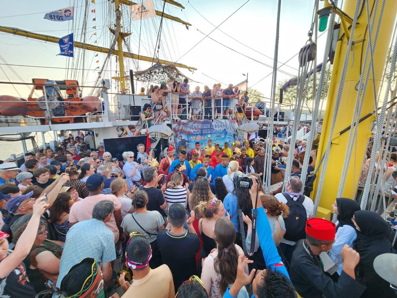 Jalesveva Jayamahe,PRANCIS, 19 Juni 2023,—- Berhasil mencuri perhatian pengujung lokal maupun mancanegara, Kapal Layar Tiang Tinggi TNI AL KRI Bima Suci menjadi Primadona pada event L’Armada Rouen 2023 di Port of Maritime, Rouen, Prancis awal pekan ini. Kehadiran KRI Bima Suci dalam event berskala internasional tersebut selalu dibanjiri pengunjung setiap harinya. Hal ini terlihat dari kepadatan dan antusiasme ribuan pengunjung L’Armada 2023 baik dari kalangan anak-anak hingga orang dewasa yang setiap harinya datang untuk menikmati keindahan dan menuntaskan rasa penasarannya akan kapal layar tiang tinggi KRI Bima Suci kebanggaan TNI Angkatan Laut. “Selama sandar lima hari di kota Rouen, KRI Bima Suci menjadi sorotan dan perbincangan para pengunjung yang hadir baik dari pengunjung lokal, mancanegara, awak kapal layar dari negara lain, maupun warga Indonesia yang tinggal di Prancis”, ungkap Komandan KRI Bima Suci Letkol Laut (P) M. Sati Lubis. L’Armada Rouen 2023 sendiri merupakan suatu event yang mewadahi pertemuan kapal layar dari seluruh dunia yang menjadikan event ini sebagai suatu ciri khas bagi komunitas penggemar kapal layar untuk melihat langsung secara dekat, berbagai macam jenis kapal layar yang dimiliki dari berbagai belahan dunia. Open Ship KRI Bima Suci setiap harinya selalu penuh kejutan dan menjadi daya tarik bagi para pengunjung dengan menampilkan berbagai kesenian baik oleh prajurit KRI Bima Suci maupun Taruna Akademi Angkatan Laut (AAL) angkatan ke-70, mulai dari Genderang Seruling Gita Jala Taruna, Reog Ponorogo, Tari Piring (Sumatra Barat), Tari Gauk (Bali), Rampak Gendang (Jawa Barat), Tari Badinding (Sumatra Barat), Rama dan Shinta (Jawa), Tari Nusantara serta sejumlah penampilan yang diiringan oleh Bima Suci Band. Dalam kesempatan berbeda, Kepala Staf Angkatan Laut (Kasal) Laksamana TNI Muhammad Ali menegaskan bahwa, peran serta TNI AL dalam pelayaran muhibah diplomasi merupakan implementasi dari cita-cita bangsa Indonesia untuk menciptakan persahabatan dan memperkenalkan budaya kepada dunia. “Maka dari itu para prajurit yang ditugaskan harus bangga karena merupakan bagian dari kepercayaan yang diberikan oleh negara”, tegas Kasal. (Red).