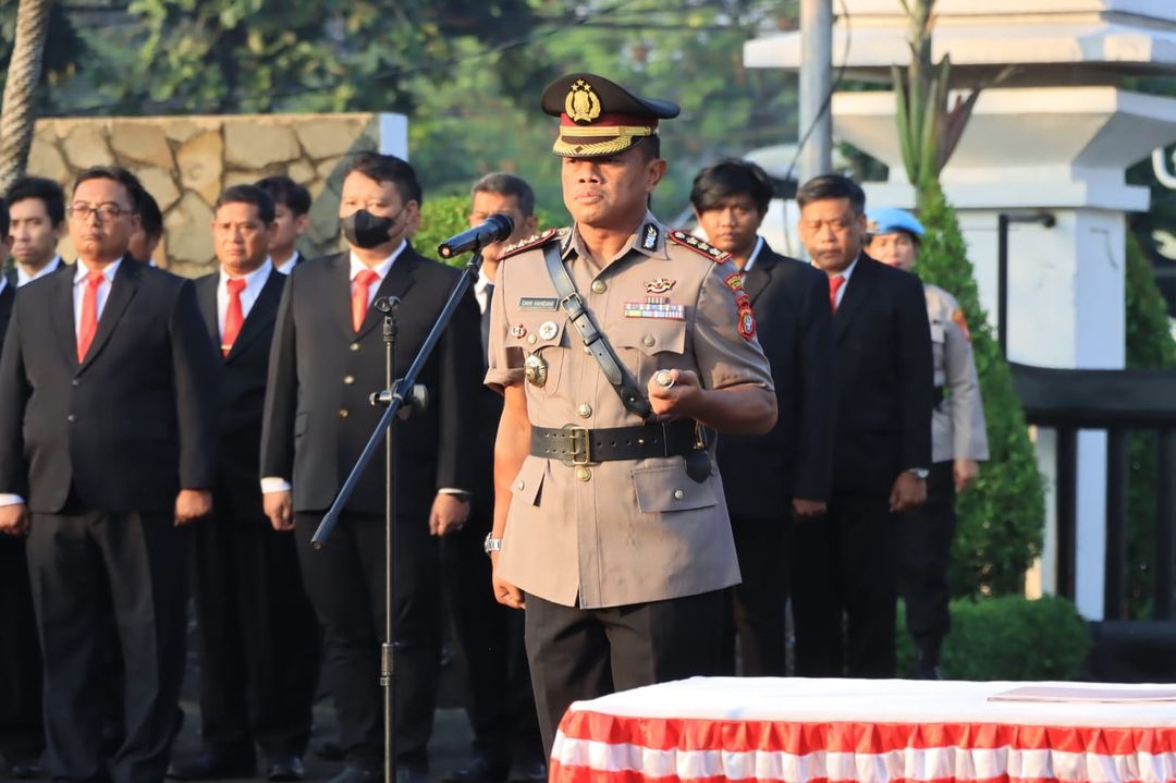 Kapolres Metro Bekasi Kota Kombes Pol Dani Hamdani, S I.K, M.P.M, menjadi Pembina Upacara yang diikuti peserta upacara terdiri dari PJU, Para Kasat, Kasie, Kapolsek, Ibu Bhayangkari Cabang Polres Metro Bekasi Kotan dan Anggota Polres Metro Bekasi Kota.