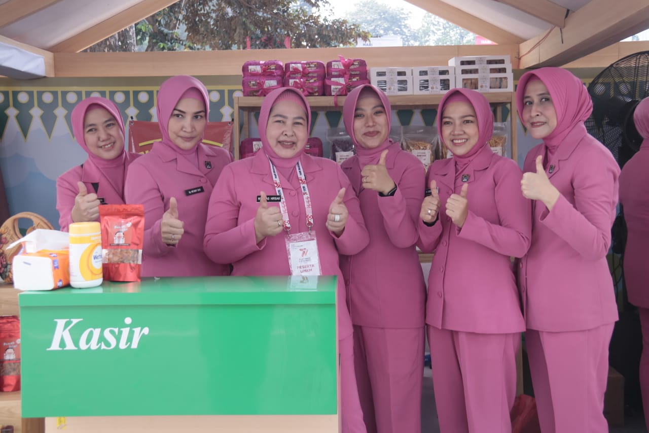 PD Bhayangkari Polda Metro Jaya menggelar stand festival UMKM bagi masyarakat dan pengunjung di Hari lahirnya Bhayangkara ke-77 di sekitar Stadion Utama GBK.