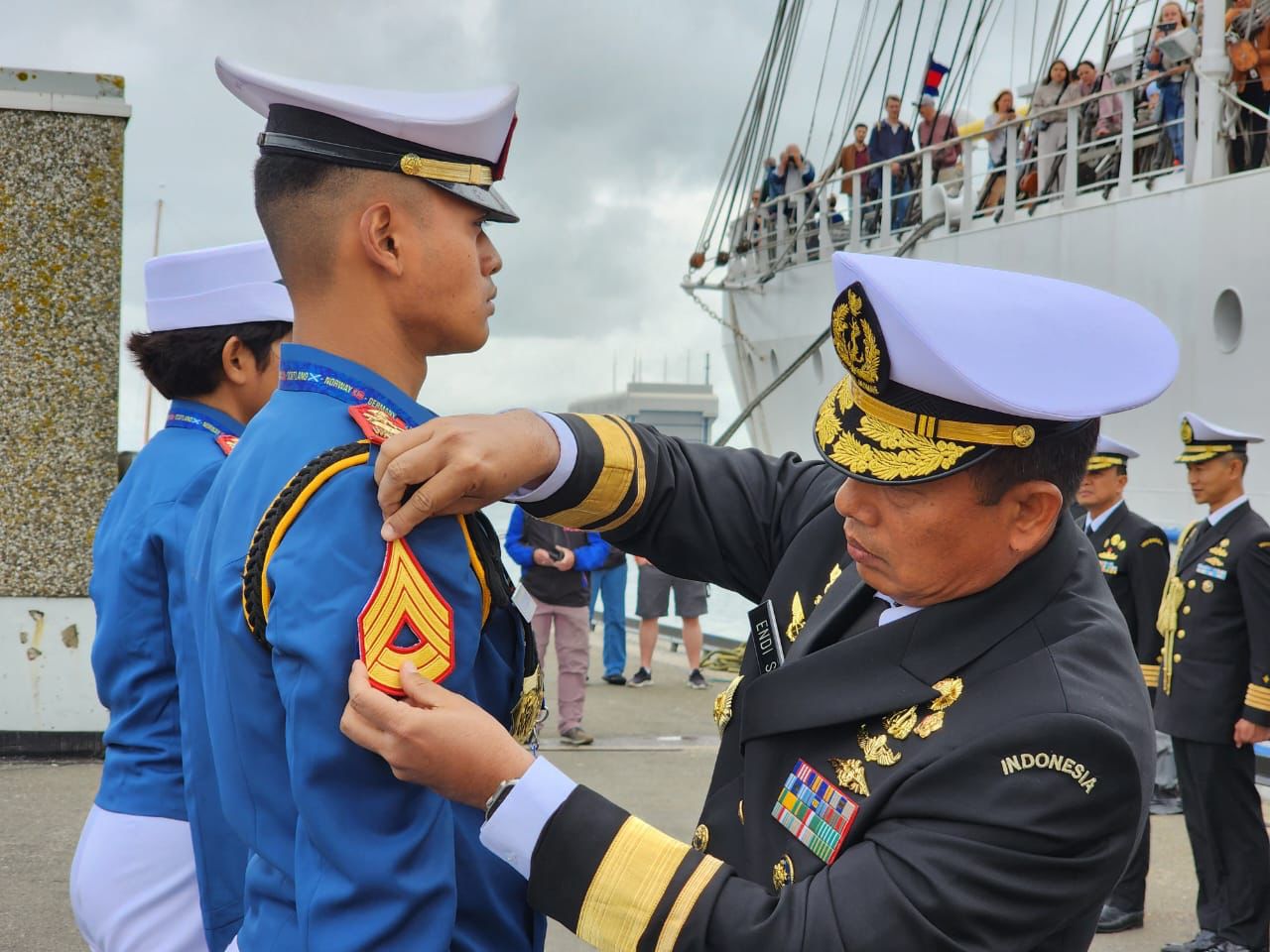 REPORTASE JAKARTAJalesveva Jayamahe,Belanda, 2 Juli 2023,—- Ini merupakan kali pertamanya dalam sejarah TNI Angkatan Laut (TNI AL) pada kenaikan Pangkat (Kenkat) Taruna Akademi Angkatan Laut (AAL) berlangsung tidak di Akademi Angkatan Laut, Bumi Moro, Surabaya melainkan di tengah-tengah event Tall Ship Race 2023 di Port of Den Helder, Belanda pada Sabtu (01/07).