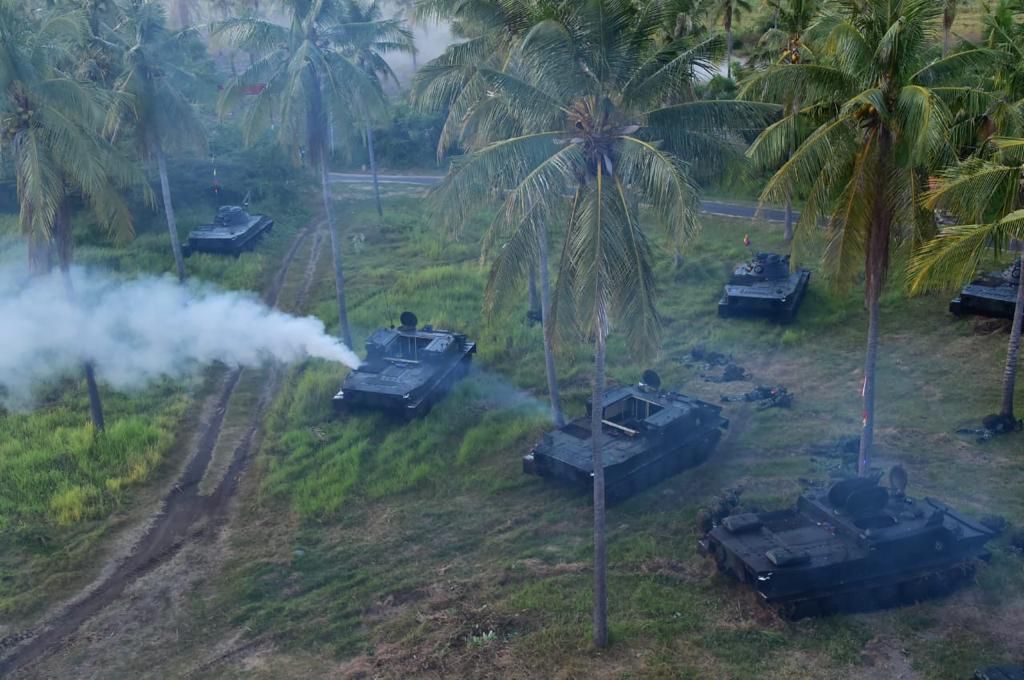 Jakarta, 1 Juli 2023 — Latihan Armada Jaya XLI Tahun 2023 saat ini memasuki tahap serbuan dan pendaratan amfibi untuk merebut pantai yang dikuasai oleh musuh. Pendaratan disaksikan langsung oleh Kepala Staf Angkatan Laut (Kasal) Laksamana TNI Muhammad Ali sebagai Pimpinan Utama Latihan Armada Jaya XLI TA 2023 bertempat di Pantai Banongan, Situbondo, Sabtu (01/07). Unsur kendaraan tempur amfibi TNI AL yang melaksanakan pendaratan meliputi 5 unit Tank BMP-3F, 7 unit Tank BTR-50, 3 unit LVT-7, 2 unit KAPA didukung 2 unit LCU, 6 unit LCVT, dan sejumlah pasukan pendarat Marinir yang terlibat dalam latihan tersebut. Potensi ancaman terus berkembang searah dengan kemajuan teknologi yang pesat. Latihan Armada Jaya bertujuan untuk meningkatkan profesionalisme prajurit matra laut, menguji kesiapan operasional alutsista dan menguji doktrin operasi militer dalam menghadapi kompleksitas serta dinamika ancaman. Kasal menyampaikan bahwa latihan harus terus ditingkatkan dengan kompleksitas yang lebih tinggi untuk menghadapi Latihan Gabungan TNI mendatang. “Dalam waktu dekat TNI AL akan melaksanakan Latihan Gabungan TNI dan Latihan Super Garuda Shield dengan negara lain”, ungkap Kasal. Kasal berharap para prajurit dapat mempersiapkan mental dan fisik, serta alutsista yang akan digunakan dalam latihan gabungan TNI. Latihan Armada Jaya merupakan latihan puncak TNI Angkatan Laut yang menguji kemampuan komponen SSAT (KRI, Pesawat Udara, Marinir dan Pangkalan) dalam penyelenggaraan operasi gabungan (Opsgab) TNI. Pelaksanaan kegiatan Latihan Armada Jaya XLI TA 2023 ini telah menjadi program prioritas Kepala Staf Angkatan Laut (Kasal) Laksamana TNI Muhammad Ali yaitu perencanaan pembangunan kekuatan Angkatan Laut yang bertumpu pada Sistem Senjata Armada Terpadu (SSAT) dalam kesiapan kerangka operasi gabungan yang memiliki tugas pokok yang lebih besar dan kompleks. (Red).