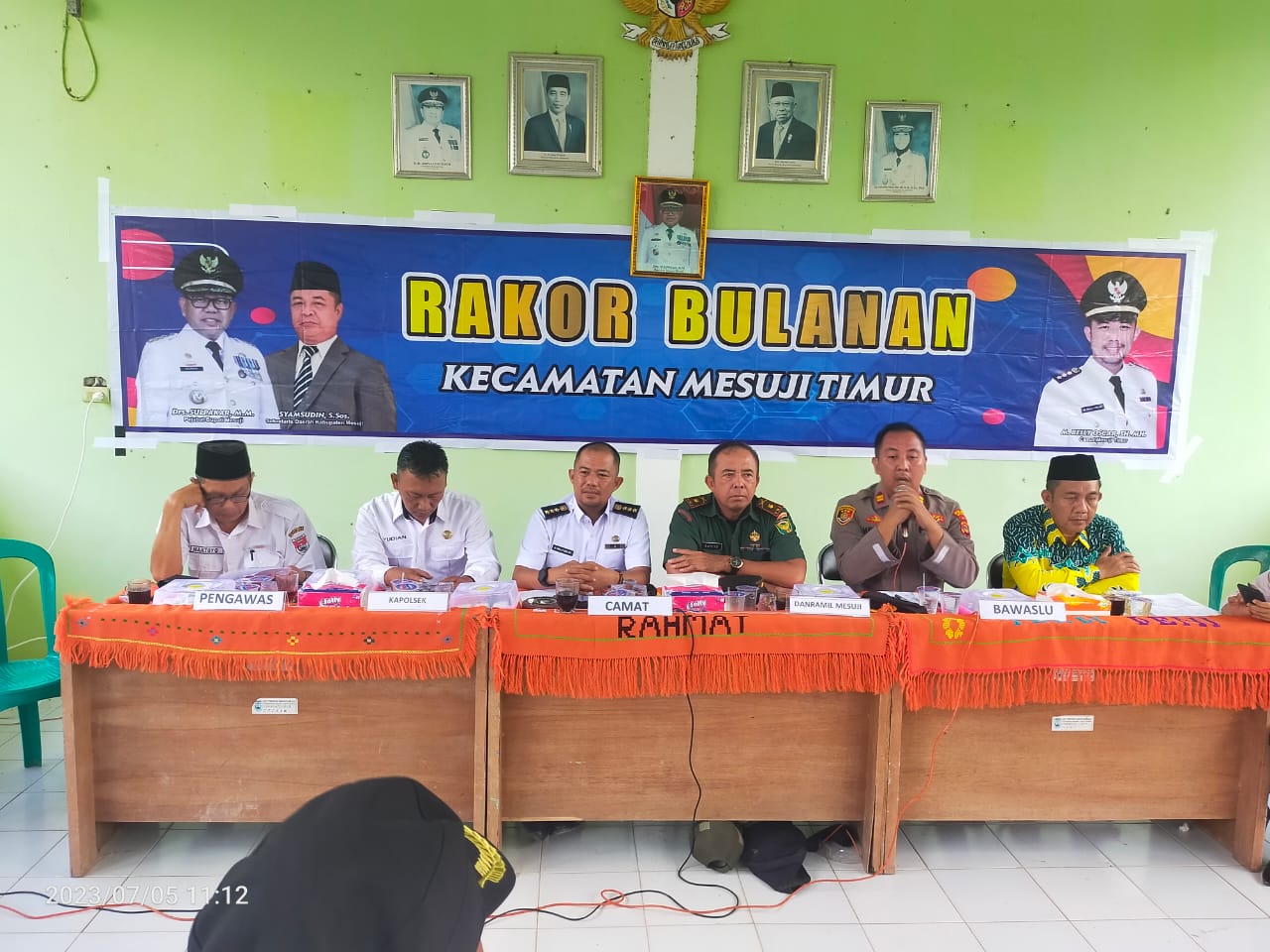 Camat Mesuji Timur M Bely Oscar SH.MH menggelar Acara Rapat koordinasi Bulanan di ruangan Aulah kecamatan Mesuji Timur. (Rabu, 05/07/2023)