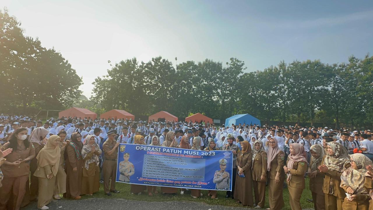 Muara Enim – Kegiatan sosialisasi dan himbauan keselamatan berlalu lintas serta tertib berlalu lintas yang dilaksanakan oleh Polres Muara Enim, Polda Sumsel di SMK Negeri 2 Muara Enim pada Senin, 17 Juli 2023, merupakan langkah yang sangat penting dan bertujuan untuk meningkatkan kesadaran tentang keselamatan berlalu lintas di kalangan guru dan siswa.