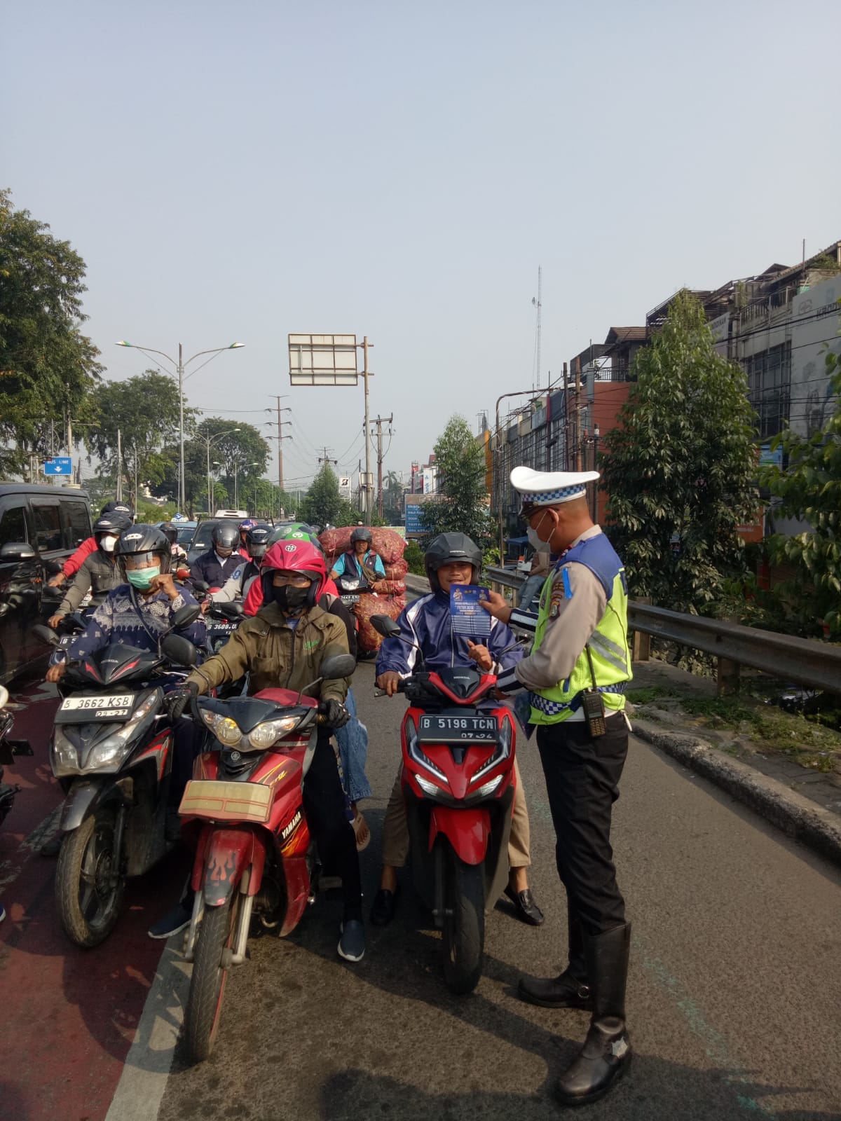 – Memberikan teguran yang tidak pakai helm 5 Orang.
