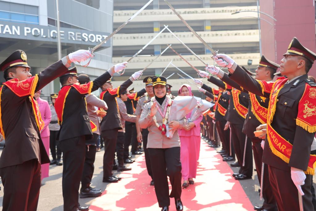 Upacara Pelepasan Purna Bakti tersebut berlangsung dengan penuh rasa haru dan dilaksanakan di Halaman Polres Metro Jakarta Barat serta diiringi tradisi pedang pora yang dipimpin langsung oleh Kapolres Metro Jakarta Barat Kombes Pol M Syahduddi