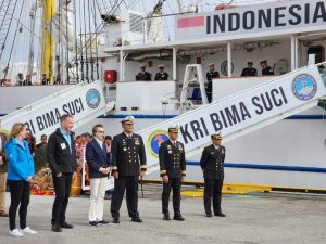 SKOTLANDIA 29 Juli 2023,— Misi TNI Angkatan Laut (TNI AL) yang diwakili oleh Satuan Tugas Misi Pelayaran Diplomasi dan Duta Bangsa Kartika Jala Krida (Satgas KJK 2023) yang mengagumkan dan menuai pujian dari Princess Royal British Anne saat kedatangannya mengunjungi KRI Bima Suci pada event bergengsi kapal layar internasional Tall Ship Race 2023 bertempat di Port Holmsgrat pier no.5, Lerwick, Skotlandia pada Jumat (28/07). Pada kunjungan Princess Royal British ke KRI Bima Suci yang merupakan salah satu rangkaian kunjungannya ke Lerwick dalam rangka meninjau langsung pelaksanaan Tall Ship Race 2023 itu, Komandan KRI Bima Suci Letkol Laut (P) M.Sati Lubis, yang didampingi perwira lainnya berkesempatan menyambut langsung kedatangan salah satu orang ternama di Inggris itu. Pada kedatangannya tersebut, Princess Royal British Anne menyampaikan rasa takjubnya atas diaspora Indonesia di daratan Eropa khususnya di wilayah Inggris, terlebih atas kehadiran dan penampilan prajurit TNI Angkatan Laut (TNI AL) dalam mempertunjukkan berbagai kesenian maupun budaya yang dimiliki Indonesia serta kebolehan penampilan para Taruna Akademi Angkatan Laut (AAL) angkatan ke-70 yang semakin banyak dikenal masyarakat utamanya di kota Lerwick ini. Komandan KRI Bima Suci menyampaikan rasa terima kasihnya atas dukungan serta keramahan yang diberikan masyarakat kota Lerwick kepada KRI Bima Suci selama sandar. Hal ini merupakan suatu peristiwa dan kesempatan yang sangat istimewa, dikarenakan KRI Bima Suci didaulat dan dipercaya untuk menampilkan kekayaan budaya bangsa Indonesia dalam penyambutan Princess Royal British Anne di Lerwick. KRI Bima Suci dipilih karena keunikan, kemeriahan dan keindahan budaya Indonesia yang ditampilkan selama melaksanakan misi duta bangsa di Eropa khususnya di wilayah United Kingdom. “Ini adalah bukti nyata cermin tingginya minat dan antusiasme masyarakat internasional terhadap budaya Indonesia, kita bangga misi Bima Suci sebagai Satgas Misi Pelayaran Diplomasi dan Duta Bangsa untuk mempromosikan Indonesia dan menjalin hubungan persaudaraan dapat terus tercipta”, jelas Letkol Laut (P) M. Sati Lubis. Kedatangan Princess Royal British selain disuguhi penampilan kesenian Reog dari Jawa Timur, juga disambut dengan kehebohan penampilan Genderang Suling Gita Jala Taruna AAL angkatan ke-70 Satlat KJK 2023 yang juga membuat decak kagum salah satu orang ternama di negara Inggris ini. Hal ini tentunya membuat kehadiran KRI Bima Suci berhasil menyuguhkan tingginya nilai budaya bangsa Indonesia di setiap kota/negara yang disinggahinya. Pelaksanaan kegiatan ini sesuai dengan arahan Kepala Staf Angkatan Laut (Kasal) Laksamana TNI Muhammad Ali bahwa peran serta TNI AL dalam pelayaran muhibah diplomasi merupakan implementasi dari cita-cita bangsa Indonesia untuk menciptakan persahabatan dan memperkenalkan budaya kepada dunia. “Maka dari itu para prajurit yang ditugaskan harus bangga karena merupakan bagian dari kepercayaan yang diberikan oleh negara”, tegas Kasal. (Red).