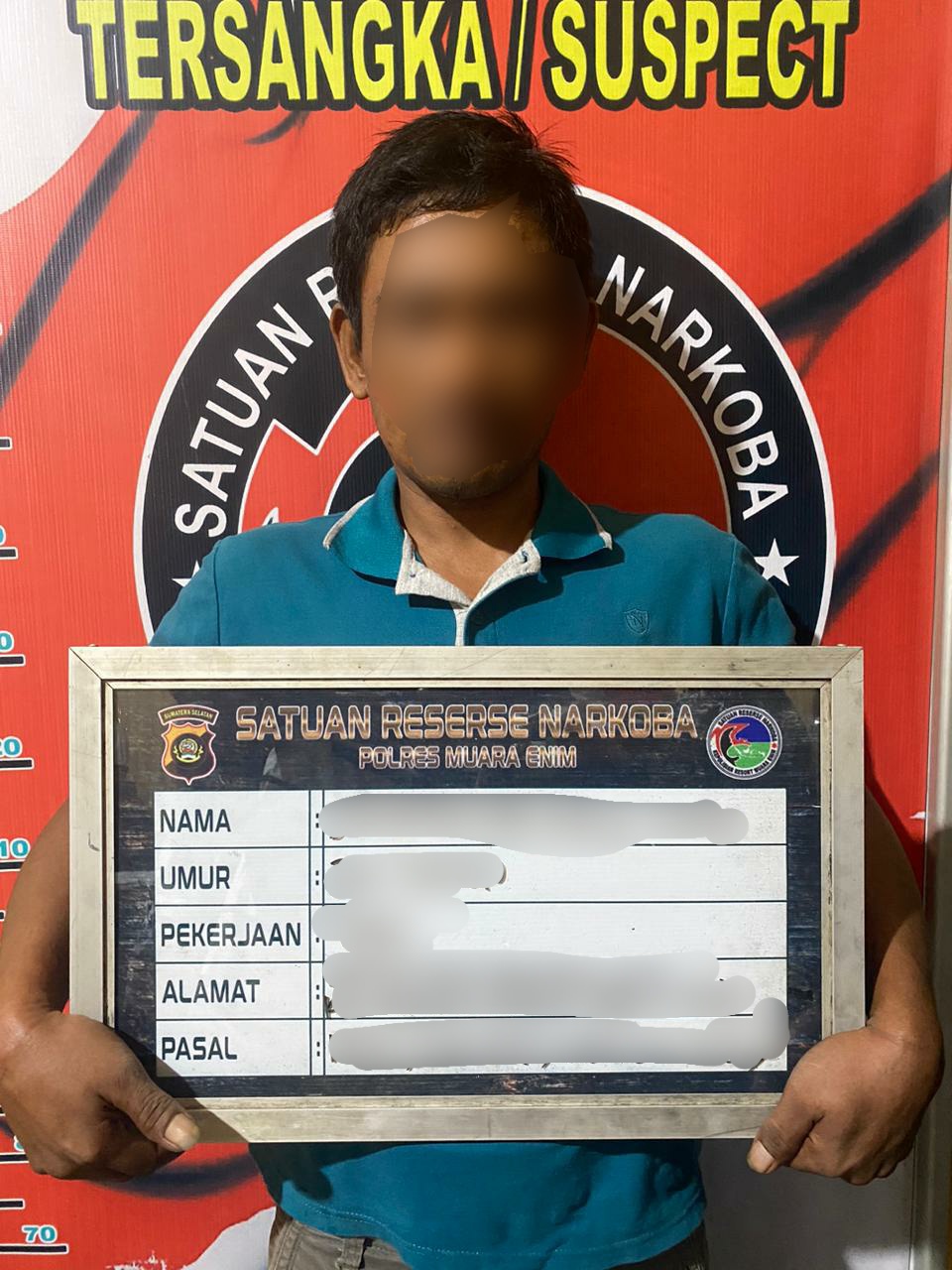 Personil dari sat Resnarkoba Polres Muara Enim langsung melakukan penyelidikan kemudian setelah didapati informasi yang akurat terhadap lokasi dan ciri-ciri pelaku maka selanjutnya dilakukan penggerebekan dan berhasil mengamankan pelaku.
