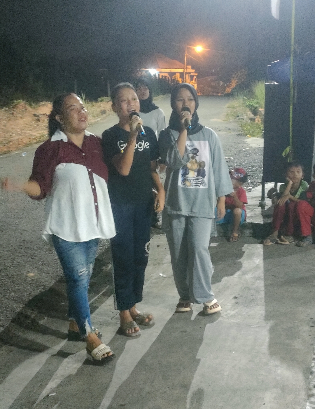 ” Malam ini kami melaksanakan pertandingan atau perlombaan karoke tuk ibu ibu dan bapak bapak ataupn anak anak dalam memeriahkan Hari Ulang Tahun (HUT) RI ke 78,” Ucap salah satu warga Yg mengikuti perlombaan.