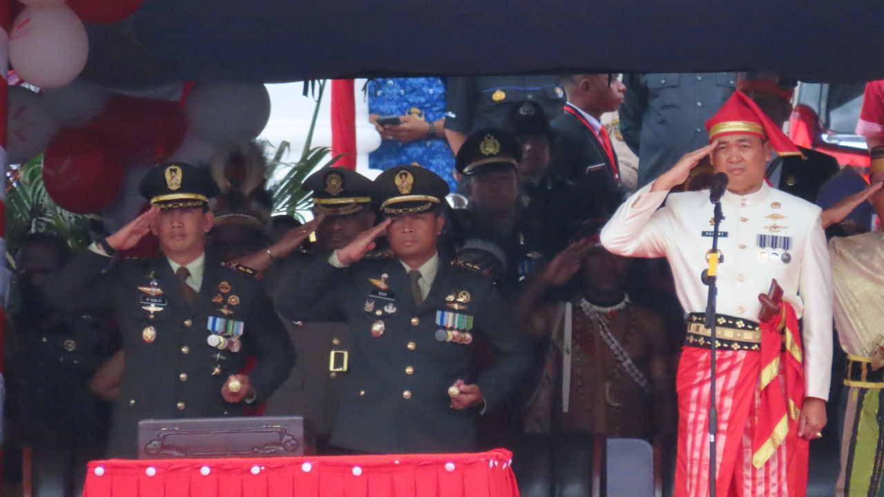 Timika — Komandan Kodim 1710/Mimika Letkol Inf Dedy Dwi Cahyadi menghadiri Upacara Hari Ulang Tahun (HUT) Kemerdekaan Republik Indonesia ke-78, bertempat di halaman kantor pusat pemerintahan Kabupaten Mimika Jln Cendrawasih, Distrik Kuala Kencana, Kab. Mimika, Kamis (17/08/2023).