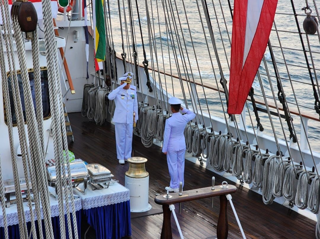 Samudra Atlantik Utara, 19 Agustus 2023 —- Seluruh prajurit Satuan Tugas Misi Diplomasi dan Duta Bangsa Kartika Jala Krida Tahun 2023 (Satgas KJK 2023) menyelenggarakan upacara Hari Ulang Tahun Republik Indonesia ke-78 (HUT RI Ke-78) di atas geladak utama kapal layar latih tiang tinggi kebanggaan TNI Angkatan Laut (TNI AL) KRI Bima Suci yang tengah melaksanakan pelayarannya menuju Spanyol di Samudra Atlantik Utara pada Kamis (17/08). Upacara dipimpin oleh Komandan KRI Bima Suci Letkol Laut (P) M. Sati Lubis juga selaku Dansatgas KJK 2023 dan diikuti oleh seluruh prajurit Satgas KJK 2023. Pada pelaksanaan upacara yang diikuti seluruh prajurit TNI AL ini, KRI Bima Suci membawa 96 prajurit yang telah memulai pelayarannya sejak (02/04/2023) dan rencananya akan tiba di tanah air pada (02/11/2023) mendatang dengan menempuh jarak 25.871 Nm. Pelayaran dalam misi diplomasi dan duta bangsa ini akan berlangsung selama 214 hari, memulai perjalannya dari Surabaya – Batam – Colombo (Srilanka) – Salalah (Oman) – Jeddah (Arab Saudi) – Alexandria (Mesir) – Algeir (Algeria) – Rouen (Prancis) – Brest (Prancis) – Den Helder (Belanda) – Hartlepool (Inggris) – Fredrikstad (Norwegia) – Aberdeen (Skotlandia) – Lerwick (Skotlandia) – Arendal (Skotlandia) – Rostock (Jerman) – Vigo (Spanyol) – Tunis (Tunisia) – Port Said (Mesir) – Jeddah (Arab Saudi) – Muscat (Oman) – Colombo (Srilanka) – Belawan dan Surabaya sebagai tujuan akhir pelayaran. Dalam sambutannya, Dansatgas KJK 2023 membacakan amanat Kepala Staf Angkatan Laut (Kasal) Laksamana TNI Muhammad Ali mengatakan bahwa tema peringatan HUT RI ke-78 yaitu “Terus Melaju Untuk Indonesia Maju” dimana tema ini merefleksikan semangat bangsa Indonesia untuk senantiasa melanjutkan perjuangan dalam pembangunan, serta saling bersinergi dan berkolaborasi untuk mewujudkan Indonesia yang semakin maju dan sejahtera. Lebih lanjut disampaikan sebagai bagian dari Negara Kesatuan Republik Indonesia (NKRI), TNI AL memiliki tugas dan tanggung jawab moral maupun konstitusional untuk melaksanakan pembangunan nasional dibidang pertahanan matra laut. “Untuk itu, program pembangunan kekuatan dan pembinaan kemampuan TNI AL diarahkan untuk mendukung terwujudnya pertahanan maritim yang dapat, mengatasi segala bentuk ancaman, sehingga program pembangunan dapat terwujud dengan aman dan lancar”, jelas Kasal dalam amanatnya yang dibacakan Komandan KRI Bima Suci. Mengakhiri sambutannya Kasal memberikan penekanan agar selalu meningkatkan keimanan dan ketakwaan kepada Tuhan Yang Maha Esa sebagai landasan pengabdian kepada bangsa dan negara; mengembangkan kualitas diri sebagai prajurit TNI AL yang profesional serta pedomani Sumpah Prajurit, Sapta Marga, Delapan Wajib TNI serta Trisila TNI AL; jalin semangat persatuan dan kesatuan dengan semua lapisan masyarakat dalam rangka memperkokoh persatuan bangsa dan aktualisasi nilai-nilai perjuangan dalam mengisi kemerdekaan menuju Indonesia yang merdeka, bersatu, berdaulat, adil dan makmur. (Red).