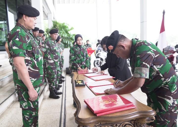 Penandatanganan hibah dan berita acara hibah dilakukan oleh Aslog Panglima TNI Mayjen TNI Yustinus Peristiwanto, S.T., bersama Ibu Carolina Satriyo Pinandoyo Direktur PT Borneo Indobara, disaksikan oleh Panglima TNI Laksamana TNI Yudo Margono, S.E., M.M. dan Pejabat Utama Mabes TNI, bertempat di Plaza Mabes TNI Cilangkap, Jakarta Timur, Jumat (25/8/2023).