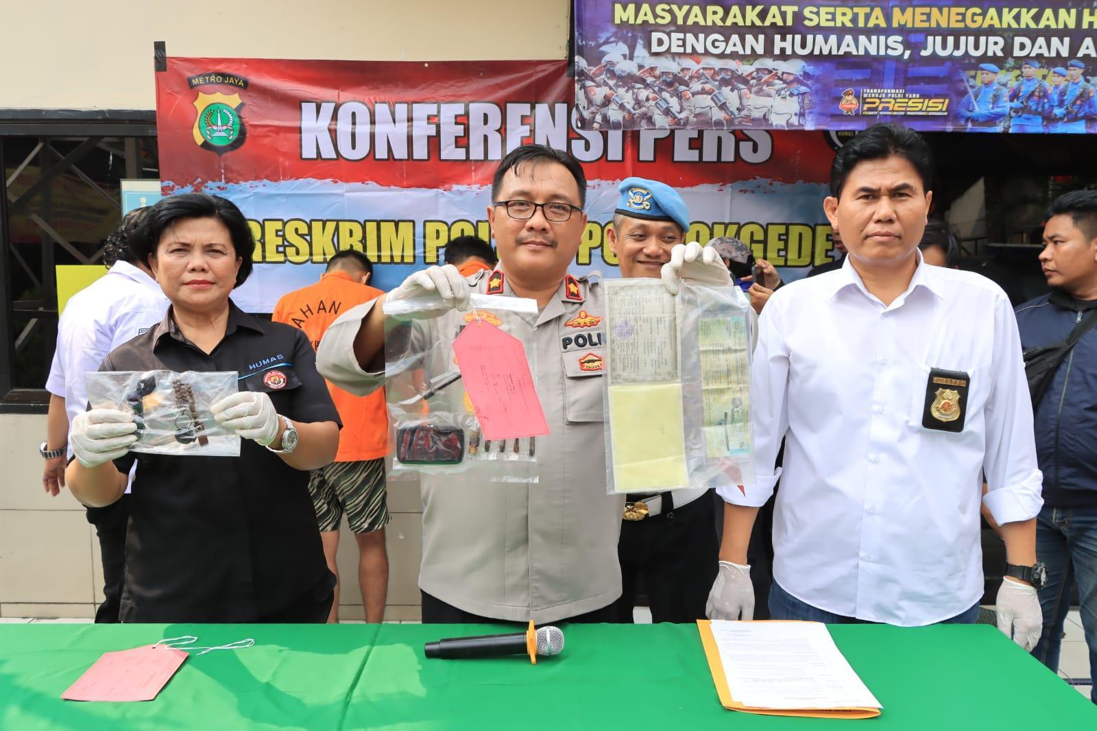 Kemudian Kapolsek Pondok Gede yang turut didampingi Kasie Humas Polres Metro Bekasi Kota Kompol Erna Ruswing Andari menjelaskan krinologis penangkapan kedua pelaku sehingga berhasil diamankan dan berikut barang buktinya di Polsek Pondok Gede.