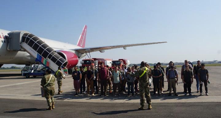 (Puspen TNI). Se FCtelah pada sorti sebelumnya Amerika Serikat (AS) mengirimkan 238 personelnya untuk berpartisipasi dalam Latihan Gabungan Bersama Super Garuda Shield 2023, hari ini negeri Paman Sam kembali mengirimkan 447 personelnya yang diangkut dengan dua maskapai komersilnya, bertempat di Pangkalan TNI AL (Lanudal) Juanda Surabaya, Senin (28/8/2023).
