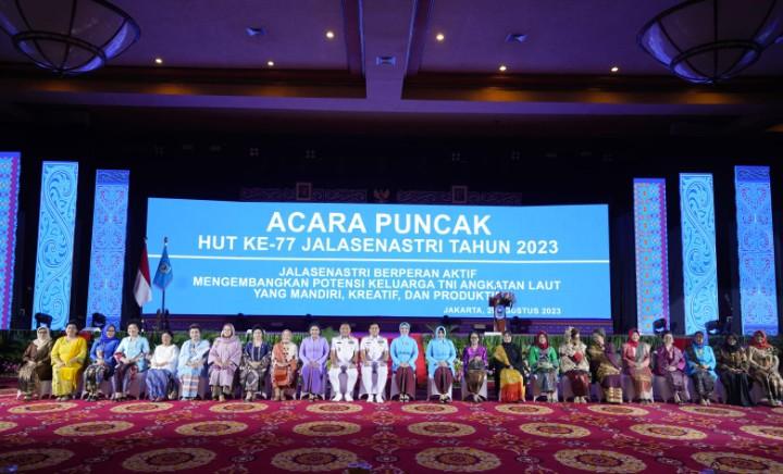 Puspen TNI — Ketua Umum (Ketum) Dharma Pertiwi Ny. Vero Yudo Margono menghadiri acara puncak HUT ke-77 Jalasenastri Tahun 2023 yang bertemakan “Jalasenastri Berperan Aktif Mengembangkan Potensi Keluarga TNI Angkatan Laut Yang Mandiri, Kreatif dan Produktif”, bertempat di Balai Samudra, Kelapa Gading, Jakarta Utara, Selasa (29/8/2023).