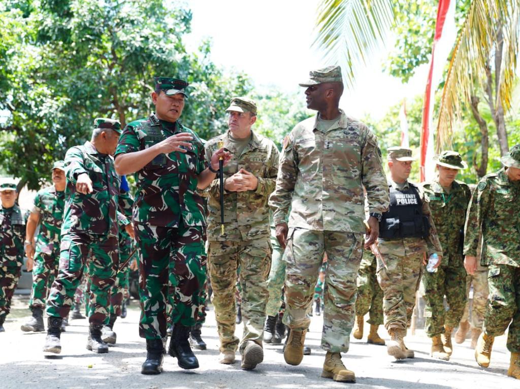 REPORTASE JAKARTAJAWA TIMUR — Panglima TNI Laksamana TNI Yudo Margono, S.E.,M.M. bersama I Corps Commanding General Lt Gen Brunson, meninjau pelaksanaan Military Decision Making Process (MDMP) Staffex Brigade, usai pelaksanaan upacara pembukaan Super Garuda Shield, yang bertempat di Puslatpur 5 Marinir Baluran Jawa Timur, Kamis (31/8/2023).