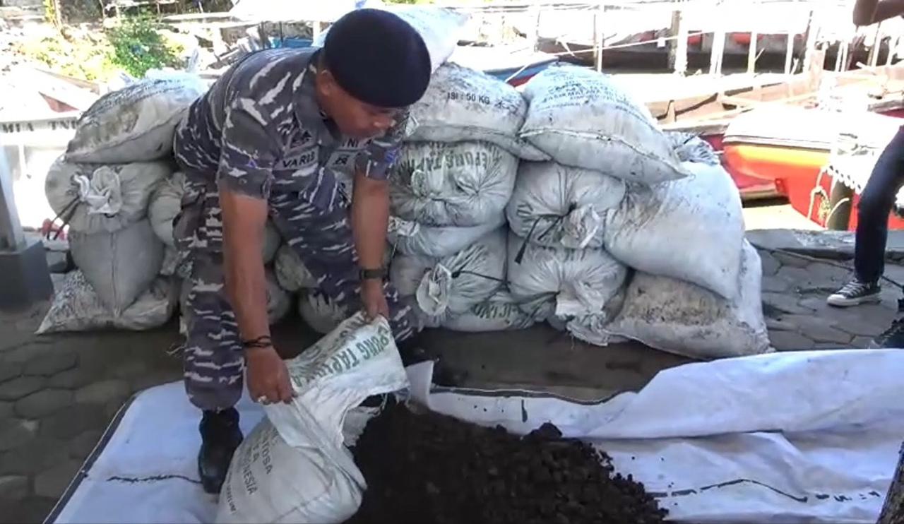 Dari penangkapan ini, Lanal Cilacap juga berhasil mengamankan barang bukti diantaranya satu unit perahu berukuran 5 – 6 GT yang berisi batubara , mesin tempel, puluhan karung berisi batubara dan skop.