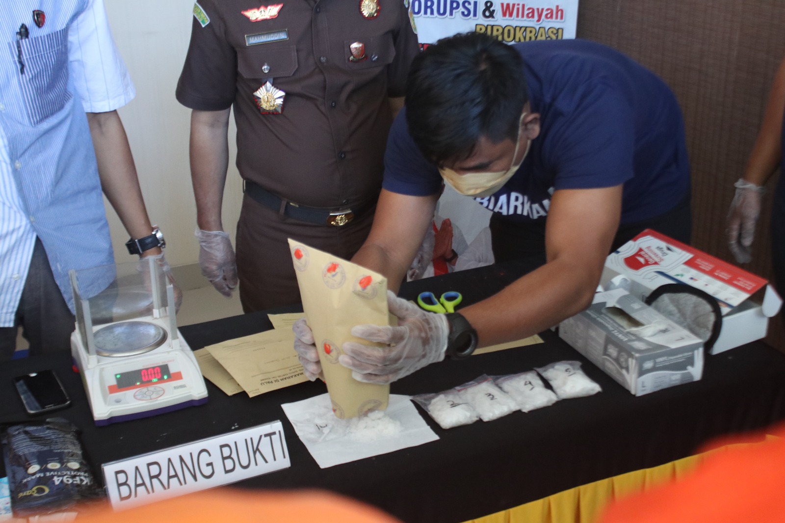 Dihadapan awak media AKBP Pradipta Mahayana mengungkapkan sebanyak 375,8412 gram barang bukti narkotika jenis sabu hari ini dimusnahkan. Barang bukti tersebut disita dari 4 kasus dengan 5 pelaku.