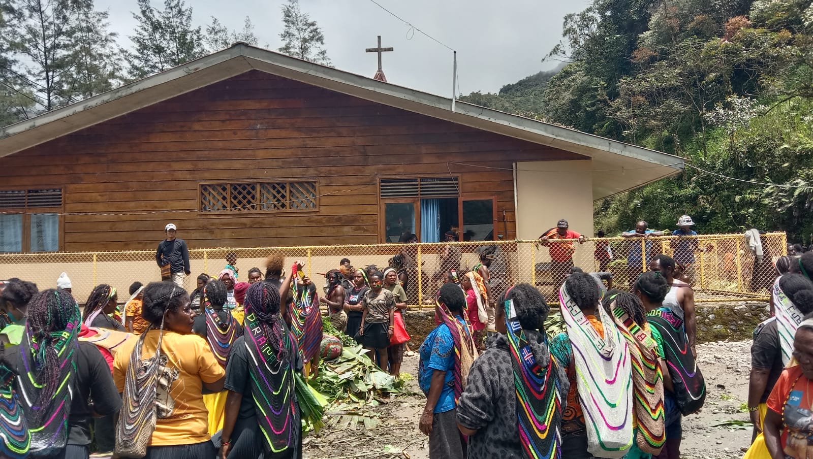 Timika – Guna terus meningkatkan hubungan baik serta memperkokoh kemanunggalan, Danramil 1710-04/Tembagapura Kapten Chb Eliazar Manuk Allo bersama 2 orang anggota menghadiri acara adat Bakar Batu dalam rangka syukuran dimulainya renovasi Gereja Kingmi Banti 2, sembari melaksanakan Komunikasi Sosial (Komsos) bersama tokoh agama dan masyarakat di wilayah binaan Kp. Banti II Distrik Tembagapura, Kab. Mimika, Sabtu (16/09/2023).