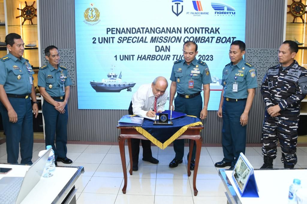 JAKARTA, 20 September 2023, — “Sesuai dengan kebijakan pemerintah untuk pemulihan ekonomi nasional, Disadal bertekad dan bekomitmen mendukung sepenuhnya program pemerintah dengan memberikan pemahaman dan instruksi kepada pihak penyedia untuk memprioritaskan Tingkat Komponen Dalam Negeri (TKDN) melalui Peningkatan Penggunaan Produk Dalam Negeri (P3DN) serta mengurangi penggunaan barang impor dalam setiap pembangunan kapal atau alat apung di lingkungan Angkatan Laut”. Hal tersebut disampaikan oleh Kepala Dinas Pengadaan TNI Angkatan Laut (Kadisadal) Laksamana Pertama TNI Widiyantoro saat membuka Acara Penandatanganan Kontrak Pengadaan dua unit special mission combat boat dan satu unit Harbour Tug TA.2023 bertempat di Disadal, Mabesal, Cilangkap, Jakarta Timur, Selasa (19/09). Kadisadal dalam sambutannya menyampaikan bahwa perencanaan pembangunan kekuatan TNI AL secara umum disusun dalam tahapan perencanaan postur untuk jangka panjang, rencana strategis (Renstra) untuk jangka menengah dan rencana kerja (Renja) untuk jangka pendek. “Proses penyusunan rencana kerja hingga menjadi DIPA merupakan mekanisme alur perencanaan anggaran yang sistematis selama satu tahun, sehingga diharapkan rencana kerja yang tersusun akan tepat sasaran sesuai dengan perencanaan jangka menengah maupun jangka panjang yang telah ditetapkan”, ungkap Kadisadal. Disadal sebagai PPK bekerjasama dengan PT. Tesco Indomaritim, PT. Palindo Marine, dan PT. Noahtu Shipyard sebagai mitra penyedia barang dan jasa yang merupakan simbolisasi dimulainya proses fisik pengadaan dua unit special mission combat boat dengan keterangan nilai kontrak masing-masing untuk special mission combat boat dari PT. Tesco Indomaritim sebesar Rp 26.964.500.000, special mission combat boat dari PT. Palindo Marine sebesar Rp 26.963.000.000, dan satu unit Harbour Tug dari PT. Noahtu Shipyard dengan nilai kontrak sebesar Rp 79.900.000.000. “Saya berharap dalam pengadaan dua unit special mission combat boat dan satu unit Harbour Tug TA. 2023 ini para galangan kapal mampu meningkatkan penggunaan produk dalam negeri (P3DN) sehingga dukungan kita terhadap program pemerintah dapat terlaksana serta target dan cita-cita pemerintah dalam kemandirian industri pertahanan dan meningkatkan perekonomian dapat terealisasi”, ujar Laksamana Pertama TNI Widiyantoro. Pada kesempatan terpisah, Kepala Staf Angkatan Laut (Kasal) Laksamana TNI Muhammad Ali menyampaikan kepada seluruh jajaran TNI AL untuk terus meningkatkan produksi dan penggunaan produk dalam negeri guna mendukung program pemerintah dalam menjadikan Indonesia yang mandiri serta mewujudkan TNI Angkatan Laut yang profesional, modern, dan tangguh. (Red).