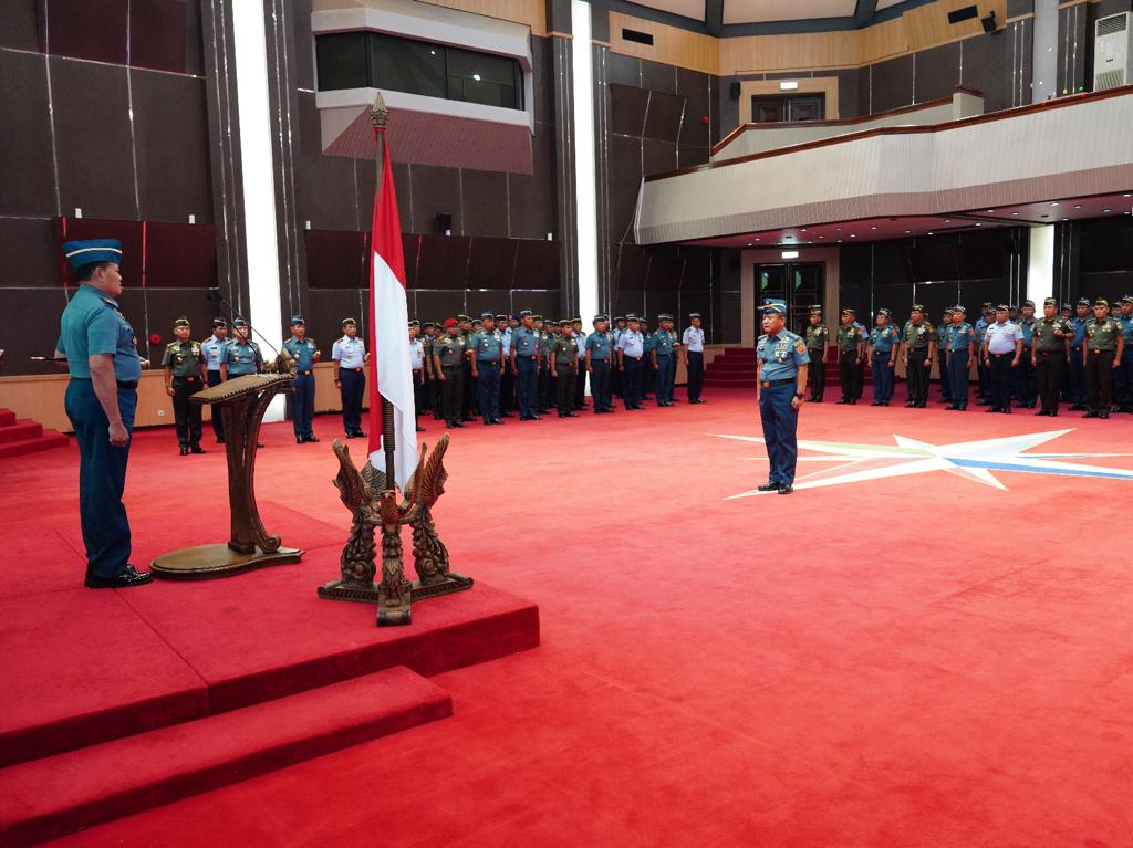Panglima TNI Laksamana TNI Yudo Margono, S.E., M.M. menerima laporan korps kenaikan pangkat 33 Perwira Tinggi (Pati) TNI di Mabes TNI, Cilangkap, Jakarta Timur, Jumat (22/9/2023).