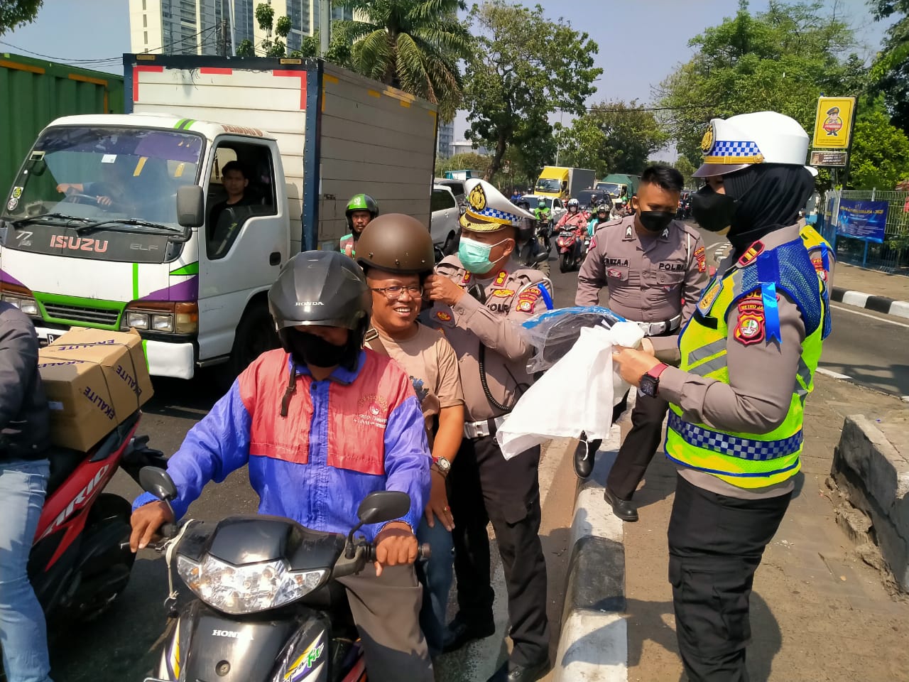 Pembagian helm gratis ini salah satu upaya proaktif yang dilakukan Satlantas Jakarta Barat untuk meningkatkan keselamatan berlalu lintas.