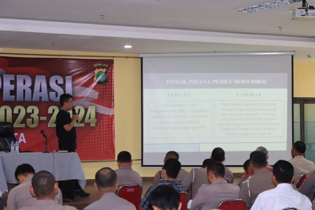BEKASI – Jelang pemilu tahun 2024, Polres Metro Bekasi Kota menggelar latihan Pra Operasi Mantap Brata Jaya 2023 – 2024 yang berlangsung di ruang Aula Lantai 7 Mapolres Metro Bekasi Kota, Rabu (11/10/2023).