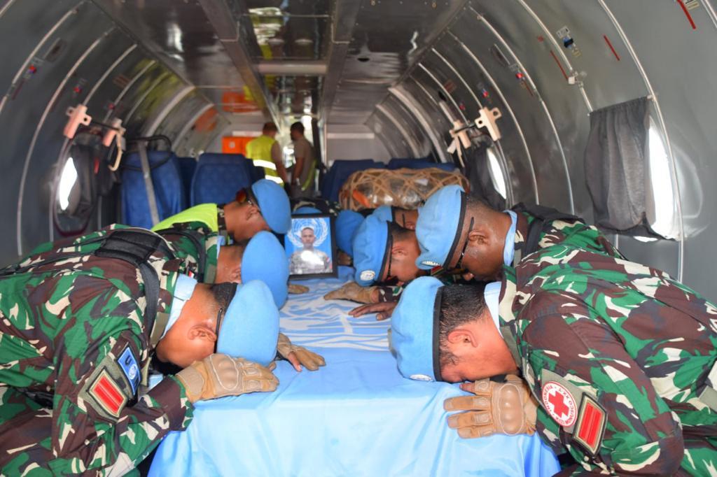 pengantaran jenazah personil Satgas KIZI TNI Kontingen Garuda XX-T Monusco, Almarhum Prajurit Satu Bibit Nailil Huda yang diselenggarakan di Bandara Beni Democratic Republik Congo (DRC), Kamis (12/10/2023). Dalam amanatnya Comander FIB menyampaikan pengabdian yang telah dilakukan almarhum selama hidupnya untuk bangsa dan negara disamping itu almahrum dalam kesehariannya sebagai salah satu imam Masjid IEC, layak untuk diberi penghargaan. Salah satunya dengan pengantaran upacara militer sebagai penghormatan terakhir kepada prajurit kusuma bangsa yang telah gugur dalam mengharumkan nama bangsa Indonesia. Prajurit terbaik Satuan Tugas KIZI TNI Kontingen Garuda XX-T Monusco telah gugur dalam melaksanakan tugas misi perdamaian dunia di Democratic Republik Congo (DRC). “Almarhum Pratu Bibit Nailil merupakan prajurit yang berdedikasi tinggi dan profesional dalam menjalankan tugas negara sebagai duta bangsa di PBB (Perserikatan Bangsa-bangsa),” ucapnya. Ucapan terima kasih, disampaikan kepada seluruh hadirin yang telah membantu dalam proses repatriasi mendiang Pratu Bibit. Semoga Tuhan membalas semua bantuan yang diberikan. Turut hadir dalam upacara tersebut, Col Johannes Kwena Moraka (Deputy Chief FIB CO), Col Selenga Salum Mugoba (Chief of Staff) para Dansatgas Monusco, RSA Batt CO, Kenya QRF CO, RSA QRF CO, Nepal QRF CO, Malawi CO, Hospital Malawi CO, India FPU CO, Senegal FPU CO dan Tanzbat CO. #tnipatriotnkri