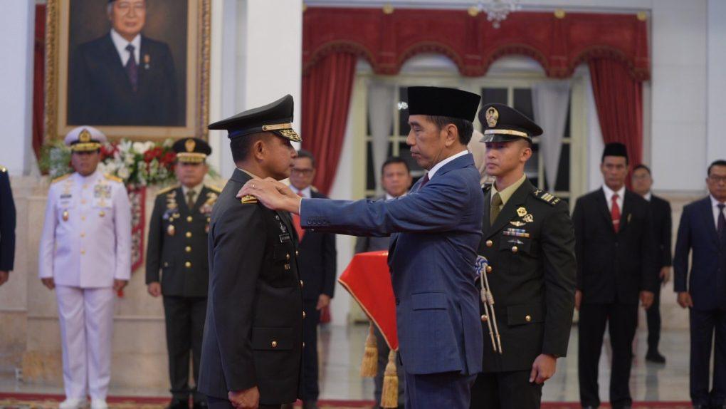 “Demi Allah saya bersumpah, bahwa saya akan setia kepada Negara Kesatuan Republik Indonesia yang berdasarkan Pancasila dan Undang-Undang Dasar Negara Republik Indonesia Tahun 1945, serta akan menjalankan segala peraturan perundang-undangan dengan selurus-lurusnya demi darma bakti saya kepada bangsa dan negara,” ucap Jenderal TNI Agus mengikuti ucapan Presiden.