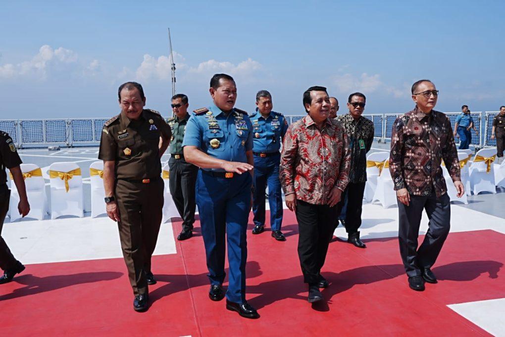 Proses penandatanganan Nota Kesepahaman (MOU) sistem elektronik berkas pidana terpadu atau e-berpadu, antara TNI dilakukan oleh Panglima TNI Laksamana TNI Yudo Margono S.E., M.M, Ketua Mahkamah Agung Prof. Dr. H. M. Syarifuddin, S.H,. M.H. dan Jaksa Agung yang diwakilkan Jaksa Agung Muda Dr. Bambang Sugeng Rukmono, diatas KRI dr. Radjiman Wedyodiningrat, Jakarta, Senin (6/11/2023).