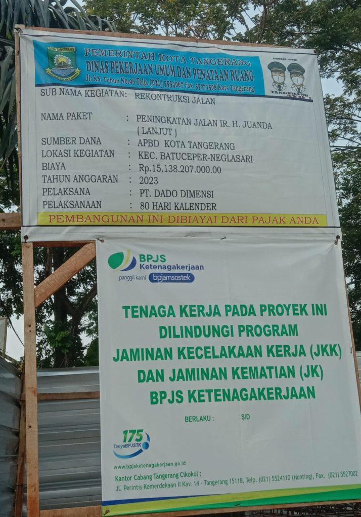 Kota Tangerang-,Pembangunan Peningkatan Jalan IR .H JUANDA dengan Sub Nama Kegiatan Rekontruksi Jalan berlokasi di Kecamatan Batu Ceper- Neglasari