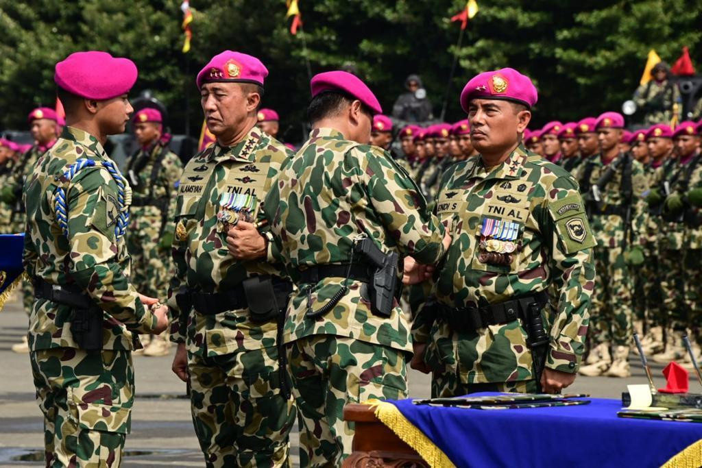 JAKARTA, 15 November 2023 — Tepat di Hari Ulang Tahun Ke-78 Korps Marinir, jabatan Komandan Korps Marinir yang merupakan suatu tonggak regenerasi kepemimpinan resmi diserahterimakan dari Letnan Jenderal TNI Mar Nur Alamsyah kepada Mayor Jenderal TNI Mar Endi Supardi yang dipimpin oleh Kepala Staf Angkatan Laut (Kasal) Laksamana TNI Muhammad Ali bertempat di Bhumi Marinir, Cilandak, Jakarta, Rabu (15/11).