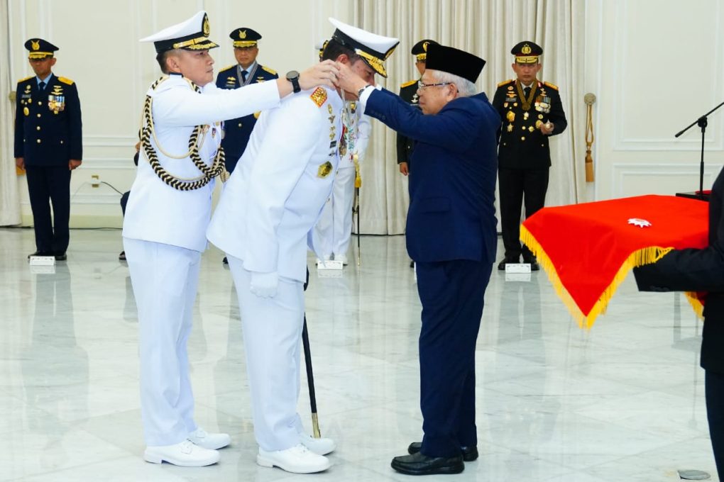 REPORTASE JAKARTAJAKARTA, (Puspen TNI). Presiden Republik Indonesia menganugerahkan tanda kehormatan Bintang Yudha Dharma Utama kepada Panglima TNI Laksamana TNI Yudo Margono, S.E., M.M., yang disematkan oleh Wakil Presiden RI K.H. Ma’ruf Amin atas nama Presiden RI, di Istana Wapres RI, Jakarta, Selasa (14/11/2023).