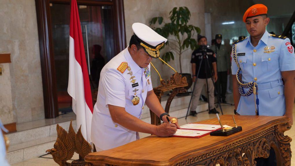 Serah terima jabatan ditandai dengan pengambilan sumpah jabatan oleh Panglima TNI, dilanjutkan dengan penandatanganan pakta integritas yang disaksikan oleh Danpuspom TNI dan Kababinkum TNI.