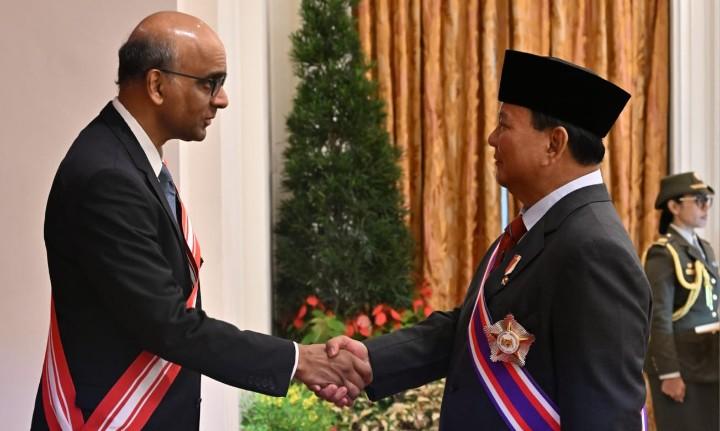 Penganugerahan tersebut diberikan langsung oleh Presiden Singapura, Tharman Sanmugaratnam kepada Prabowo di Istana Kepresidenan Singapura.