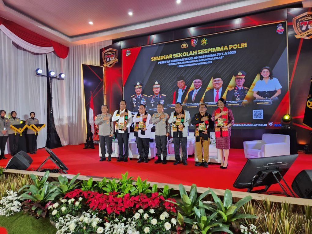 Bertempat di gedung Utaryo Sespim Lemdiklat Polri, kegiatan Seminar Sekolah Sespimma Sespim Polri Angkatan ke-70 T.A 2023 dilaksanakan. Kegiatan ini dilaksanakan secara offline dan online melalui zoom meeting dengan mengangkat tema Pemilu Damai Menuju Indonesia Emas. Seminar Sekolah Sespimma Sespim Polri Angkatan ke-70 T.A 2023 menghadirkan Hakim Mahkamah Konstitusi Indonesia Prof. Dr. Arief Hidayat, S.H., M.S., Kepala Biro Advokasi Hukum dan Penyelesaian Sengketa Andi Krisna, Ketua Bawaslu Rahmat Bagja, SH., LL. M., Dir dittipidum Bareskrim Polri Brigjen Pol Djuhandhani Rahardjo Puro, S.H., M.H., sebagai narasumber. Dalam kegiatan Seminar ini juga dihadiri oleh Koordinator Widyaiswara Kepolisian tingkat I Sespim Lemdiklat Polri Irjen Pol Drs. Eddy Hartono, S.I.K., Kasespimti Sespim Lemdiklat Polri Irjen Pol Drs. Indro Wiyono, M.Si., Kasespimmen Sespim Lemdiklat Polri Brigjen Pol Nasri, S.I.K., M.H., Kasespimma Sempim Lemdiklat Polri Brigjen Pol Mardiyono, S.I.K., M.Si., pejabat utama Sespim Lemdiklat Polri, Perwakilan SeskoAD, perwakilan SeskoAU, dan seluruh peserta didik sespimma Polri angkatan ke-70. Pemilu dimaksudkan dengan upaya untuk semakin merajut Indonesia menjadi negara yang besar. Indonesia berdasarkan pancasila adalah ideologi yang paling tepat dipraktikkan. Indonesia adalah the impossible country, kenapa? Karena Indonesia negara yang besar, dan memiliki banyak keragaman yang semuanya dapat bersatu dalam satuan Bhineka Tunggal Ika. Pemilu jangan dijadikan alat untuk memecah belah koalisasi sosial dan memecah belah negara kesatuan Republik Indonesia, tetapi pemilu adalah sebagai upaya untuk memperbaiki sistem ketatanegaraan menuju kearah yang lebih baik. Dalam sambutan yang disampaikan oleh Ketua Panitia Seminar Sekolah Sespimma Polri angkatan ke-70 T.A 2023 Rusdy, S.H., M.M., menyebutkan, “Guna mensukseskan pemilu 2024, Peserta Didik Sespimma Polri angkatan ke-70 melaksanakan kegiatan Seminar Sekolah dengan tema Pemilu Damai Menuju Indonesia Emas. Dikarenakan Tahun 2024 adalah moment politik yang sangat penting. Selain bukan pekerjaan yang mudah, ini juga pekerjaan besar yang sangat menentukan masa depan bangsa dan masa depan negara kita yang mana melibatkan jumlah pemilih yang sangat besar. Momentum waktu yang masih tersisa, harus kita manfaatkan untuk meningkatkan kapasitas teknis untuk pemilu. Semoga dengan terselenggaranya kegiatan seminar ini menambah wawasan, pengetahuan, dan masukan bagi kami agar tidak salah langkah dalam mengambil keputusan, mampu berkoordinasi, berkolaborasi, dan berkomunikasi dengan penyelenggara pemilu. Sehingga terciptanya pemilu yang damai.”