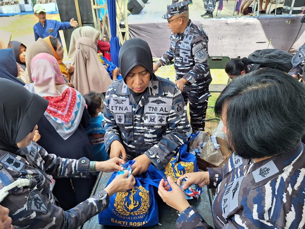 JAKARTA — Desember 2023 — Guna meningkatkan kepedulian dan rasa sosial terhadap kondisi masyarakat pedesaan yang memprihatinkan, Korps Wanita TNI Angkatan Laut (Kowal) turut mengikuti kegiatan Bakti Sosial (Baksos) di wilayah Desa Ketapang Kecamatan Maok, Tangerang, Banten bersama Lantamal III dan Desa Cibulakan, Kecamatan Cugenang, Kabupaten Cianjur, Jawa Barat bersama Spotmaral pekan ini. Pada kesempatan ini, panitia HUT ke-61 Kowal melaksanakan pemberian paket sembako dan pelayanan kesehatan kepada masyarakat. Adapun bahan kontak sembako yang diberikan meliputi : Beras, Gula, Tepung, Minyak Goreng, Kopi Bubuk, Teh Box, Susu Kental Manis, Mie Instan, Kecap, hingga makanan kecil. Ketua Panitia HUT ke-61 Kowal, Letkol Laut (KH/W) Amimul U. Bay, S.Pd., Mlntlst., M.Tr.Hanla., M.M., CHRMP. menyampaikan bahwa Baksos merupakan salah satu wujud kepedulian Kowal dan TNI AL. “Keinginan untuk berbagi dengan masyarakat kurang mampu di Desa Mauk dan Desa Cibulakan dengan harapan akan bermanfaat dan membawa berkah baik untuk masyarakat desa yang menerimanya”, jelasnya. Dalam berbagai kesempatan Kepala Staf Angkatan Laut (Kasal) Laksamana TNI Muhammad Ali menyampaikan bahwa prajurit TNI AL harus dapat memberikan manfaat pada masyarakat salah satunya yaitu pada kegiatan Baksos. “Kehadiran TNI Angkatan Laut harus dapat dirasakan manfaatnya oleh masyarakat sekitar, serta dapat memberikan solusi terhadap permasalahan yang ada”, pungkas Kasal. Turut hadir pada kegiatan Baksos ini antara lain Kapuspsi TNI Laksda TNI Wiwin Dwi Handayani, Wakil Ketua Panitia Letkol Laut (KH/W) Florida BR. Ginting, M.Tr.Hanla beserta perwakilan panitia HUT ke-61 Kowal, dan Perwakilan Kowal wilayah Jakarta dan sekitarnya. (Red).