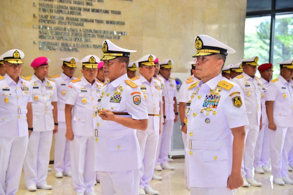 Jakarta, 22 Desember 2023 — Berputarnya roda sebuah organisasi akan bertumpu pada kemampuan sumber daya manusianya, jabatan Asisten Operasi Kepala Staf Angkatan Laut (Asops Kasal) yang merupakan salah satu jabatan strategis TNI AL resmi diserahterimakan dari Laksamana Muda TNI Denih Hendrata kepada Laksamana Muda TNI Yayan Sofiyan, dipimpin oleh Kepala Staf Angkatan Laut (Kasal) Laksamana TNI Dr. Muhammad Ali bertempat di Gedung Utama Mabesal, Cilangkap, Jakarta Timur, Jumat (22/12). Laksamana Muda TNI Denih Hendrata yang merupakan lulusan Akademi TNI Angkatan Laut Angkatan (AAL) Ke-35 tahun 1989 ini selanjutnya akan memimpin Koarmada II sebagai Pangkoarmada II. Adapun jabatan yang pernah diduduki antara lain sebagai Komandan Lantamal III Jakarta Koarmada I, Waasintel Kasal, Sahli Bidang Pertahanan Keamanan Setjen Wantannas, dan juga pernah menjabat sebagai Gubernur AAL sebelum menjabat sebagai Asops Kasal. Sementara itu, Laksamana Muda TNI Yayan Sofiyan merupakan lulusan AAL Angkatan Ke-39 tahun 1993. Riwayat jabatan yang pernah beliau duduki, antara lain Komandan Satuan Eskorta Koarmabar, Asops Koarmada III, Koorsmin Kasal, Kepala Staf Guskamla Koarmada I, Komandan Guskamla Koarmada I. Selanjutnya beliau juga menjabat sebagai Waasrena Kasal, Kepala Staf Koarmada RI, Panglima Komando Lintas Laut Militer, dan Staf Khusus Kasal. Jabatan terakhir Laksamana Muda TNI Yayan Sofiyan sebelum dilantik menjadi Asops Kasal adalah menjabat sebagai Panglima Koarmada II (Pangkoarmada II). Kasal menyampaikan ucapkan terima kasih kepada Laksamana Muda TNI Denih Hendrata yang telah menjalankan tugas sebagai Asops Kasal dengan penuh tanggung jawab dan mengucapkan selamat atas jabatan baru sebagai Pangkoarmada II. Terpilihnya Laksamana Muda TNI Yayan Sofiyan diharapkan dapat meneruskan amanah kepemimpinan organisasi yang baru sebagai Asops Kasal. Hal ini sebagai bentuk apresiasi pemimpin TNI AL atas prestasi, dedikasi, kerja keras, dan kemampuan yang dimiliki. “Diharapkan dengan adanya regenerasi kepemimpinan akan meningkatkan kinerja dan kiprah Laksamana baik di Indonesia maupun di dunia internasional”, pungkas Kasal. Kasal meyakini bahwa dengan adanya rotasi jabatan ini para pejabat akan termotivasi untuk lebih berkontribusi dalam melahirkan inovasi yang tinggi guna mendukung pelaksanaan tugas sesuai bidang masing-masing untuk mencapai kejayaan Angkatan Laut “Jalesveva Jayamahe”. (Red).