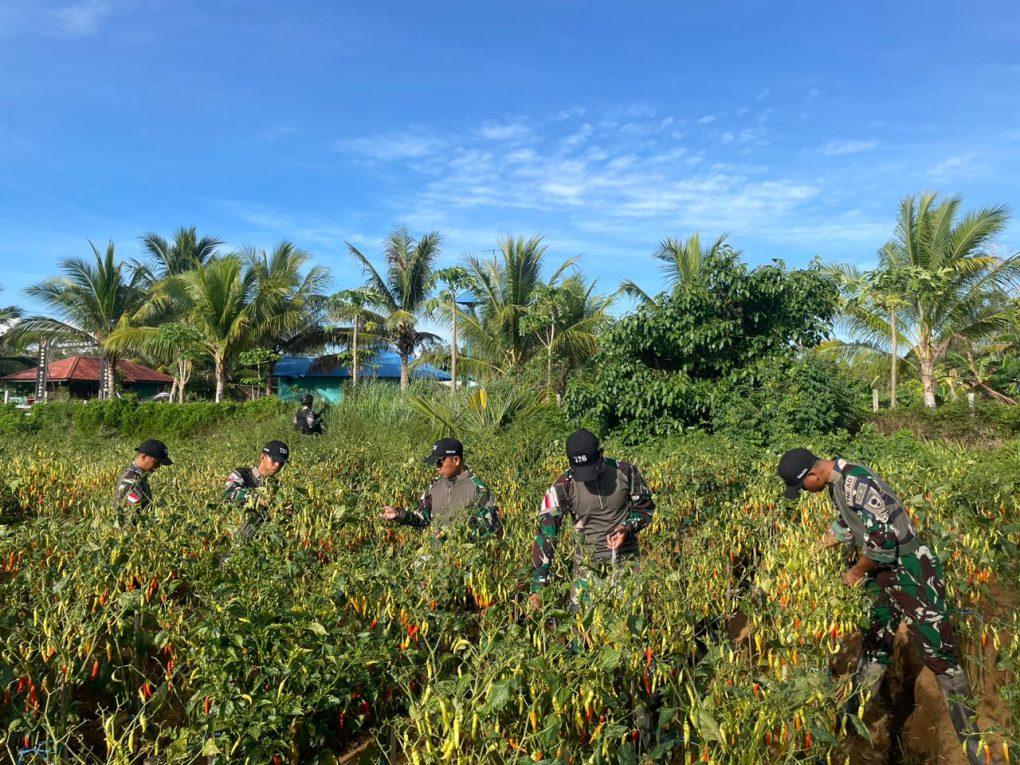 Demi mendukung program ketahanan pangan, personel Satgas bekerjasama dengan Dinas Pertanian setempat dalam hal penyediaan bibit cabe, terong dan tanaman produktif lainnya sehingga bisa ditanam ditanah sekitar Pos.