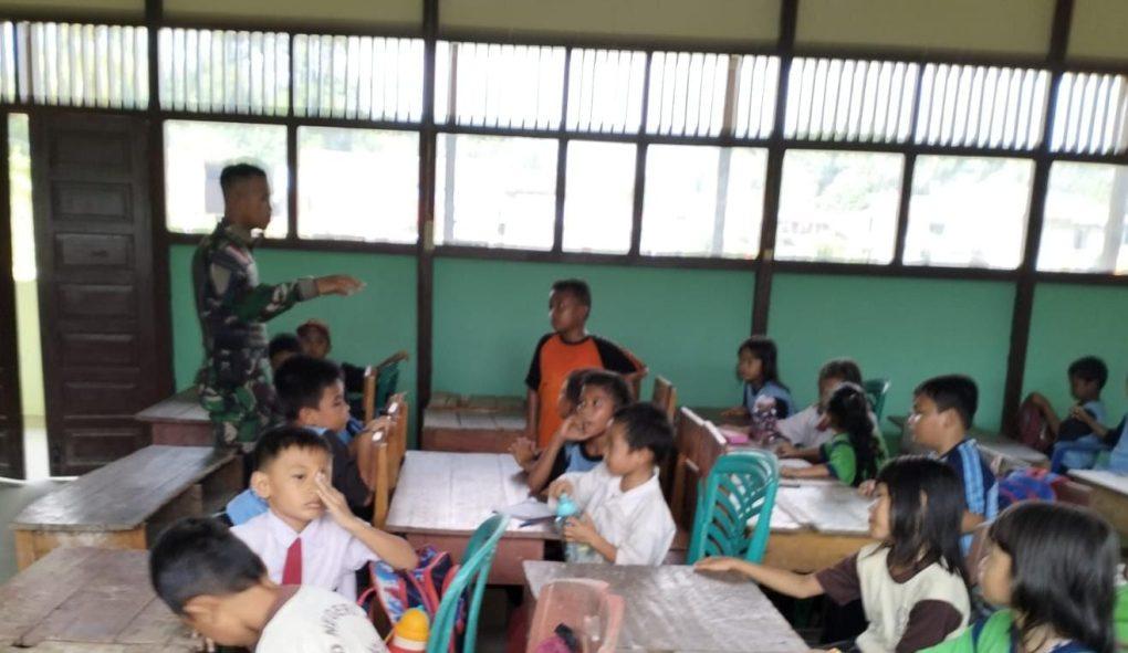 Selain memberikan semangat dalam belajar, personel Pos Koki Sungai Daun yang dipimpin oleh Wadanpos Serda Ferlis Yuliston bersama Pratu Riskal juga memberikan motivasi kepada murid-murid SDN 26 Sungai Daun tersebut.