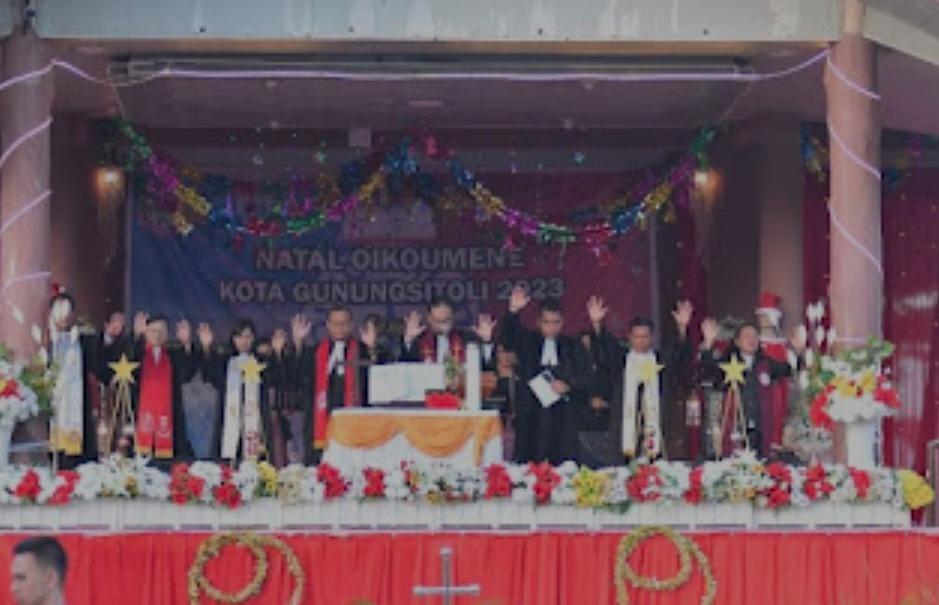 REPORTASE JAKARTAKota Gunungsitoli — Pemerintah Kota Gunungsitoli melaksanakan Perayaan Natal Oikumene 2023 dengan tema “Kemuliaan Bagi Allah dan Damai Sejahtera di Bumi” (Lukas 2:14), Pengkhotbah Pdt. Budi Setiawan, M.Div, yang diselenggarakan di Taman Yaahowu Kota Gunungsitoli, Kamis (28/12/2023).