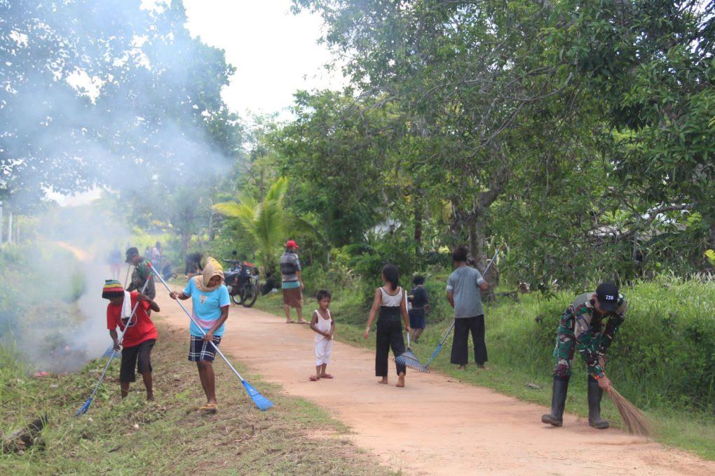 Merauke – Mengawali tahun 2024 Satgas Yonif 726/Tml melalui Pos Kotis bersama warga melaksanakan gotong royong pembersihan di kampung Sota di Distrik Sota, Minggu (07/01/2024).