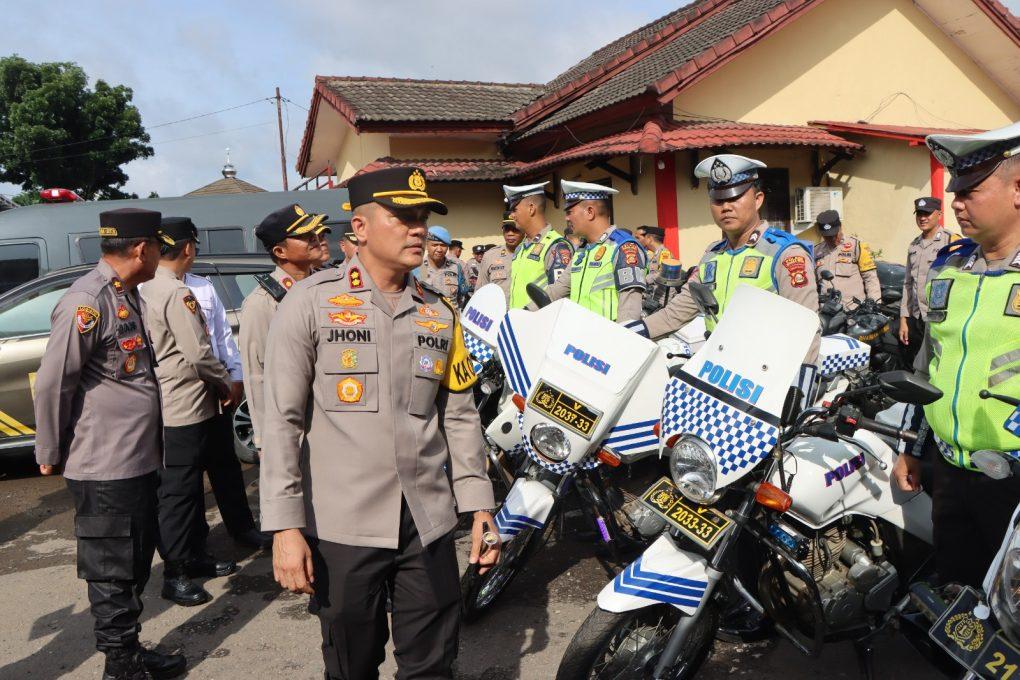 REPORTASE JAKARTAKapolres Muara Enim AKBP Jhoni Eka Putra, SH, SIK, MM bersama Wakapolres Muara Enim Kompol CS. Panjaitan, SE, MSi, dan PJU Polres Muara Enim melaksanakan pengecekan kendaraan dinas Polri dan peralatan dalmas. Pengecekan ini dilakukan di Lapangan Belakang Mapolres Muara Enim dan ditujukan untuk memastikan kondisi kelayakan kendaraan dinas baik kendaraan dinas yang di Polres Muara Enim dan Polsek Jajajaran untuk rangkaian Pemilu 2024, Senin (8/1/24)