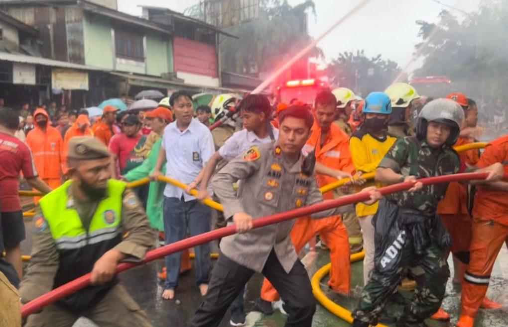 Pantauan di lokasi kejadian menunjukkan aksi koordinasi yang baik antara Kapolsek, aparat 3 Pilar, dan petugas damkar.